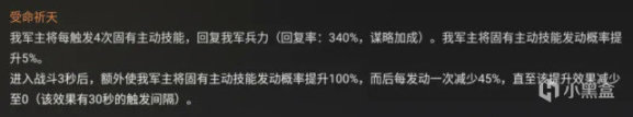 我軍主將每觸發4次固有主動技能,回覆率340%(謀略加成);