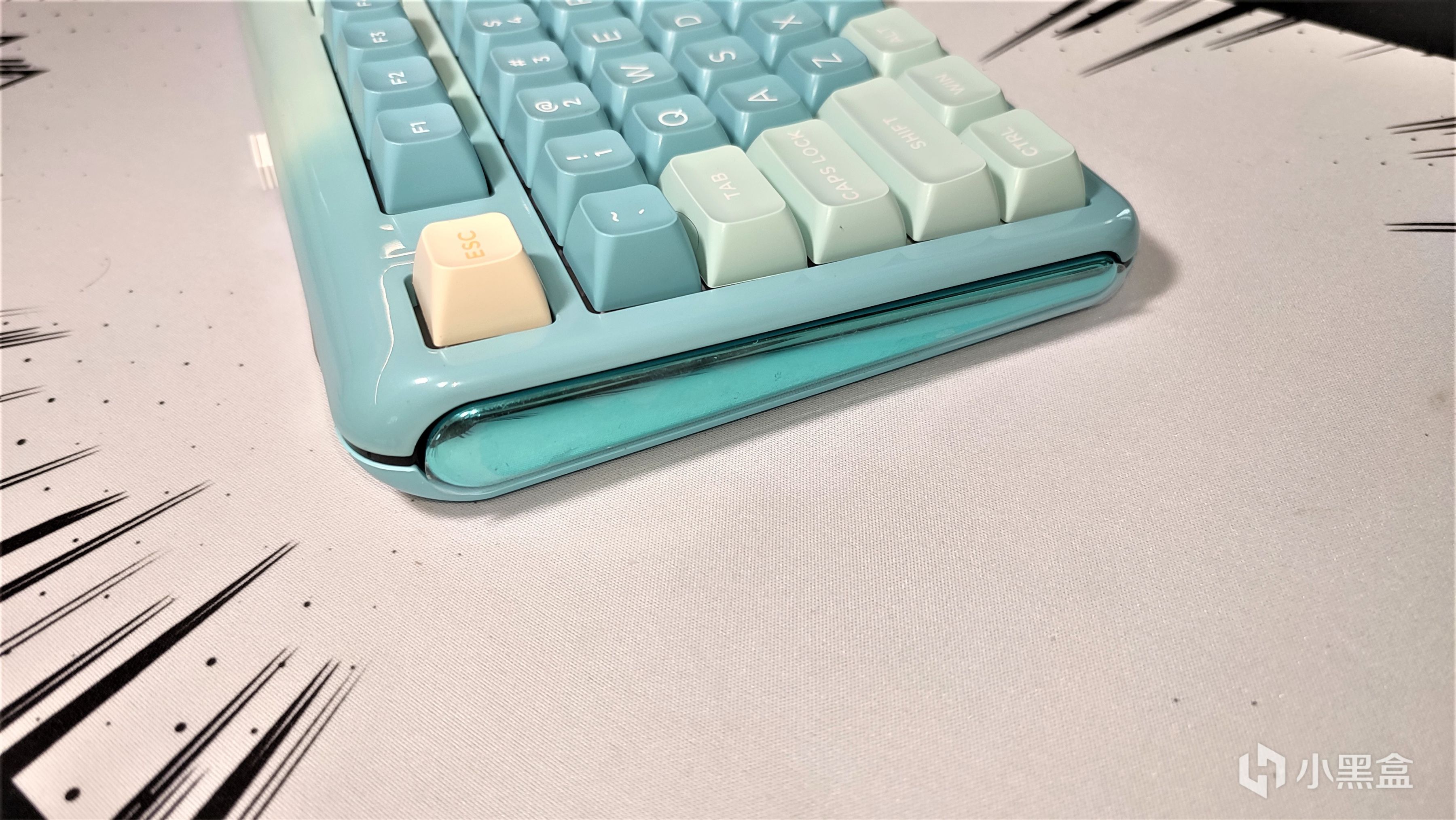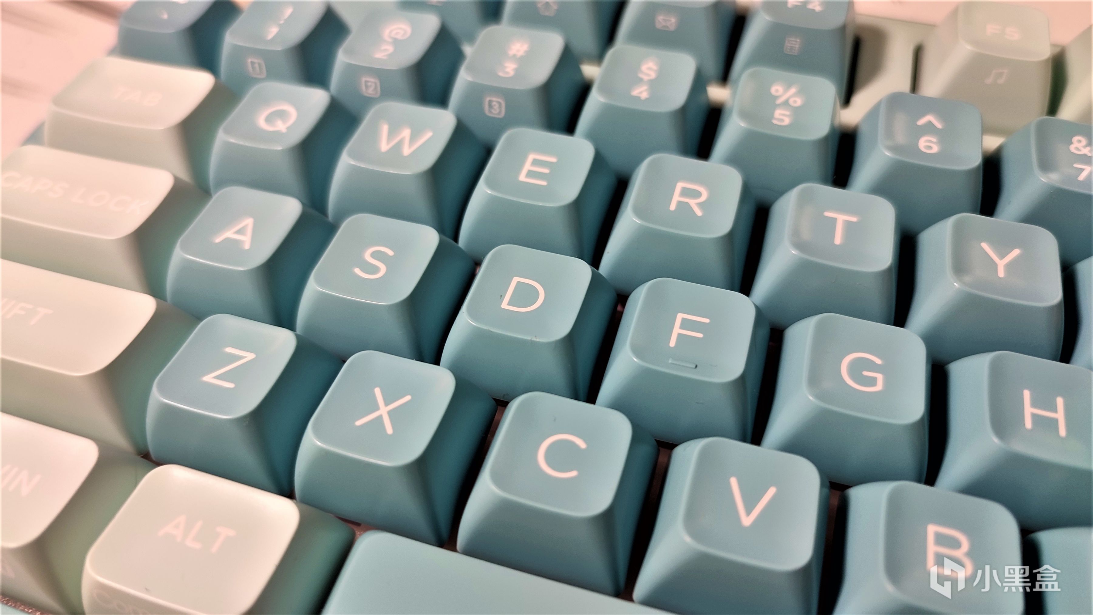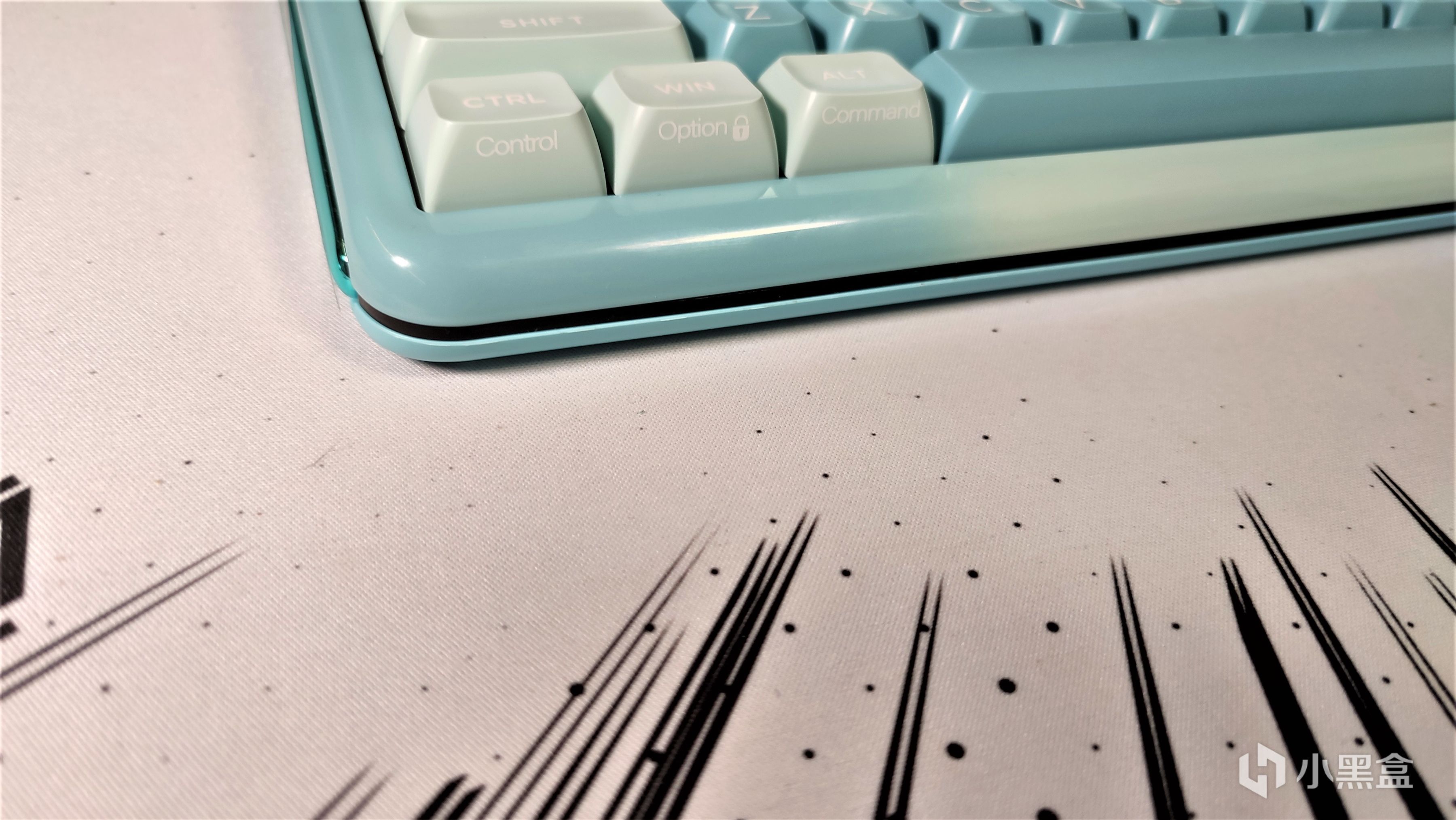 外殼採用了漸變噴漆外加高亮UV防刮噴塗,整體雖然說還是塑料外殼但是實際質感跟塑料相差甚多,同時這個漸變色也很好的映襯了鍵帽的主題,從藍色一直過渡到稍微透着一點藍色的白色,整體色彩搭配不會顯得很單調。