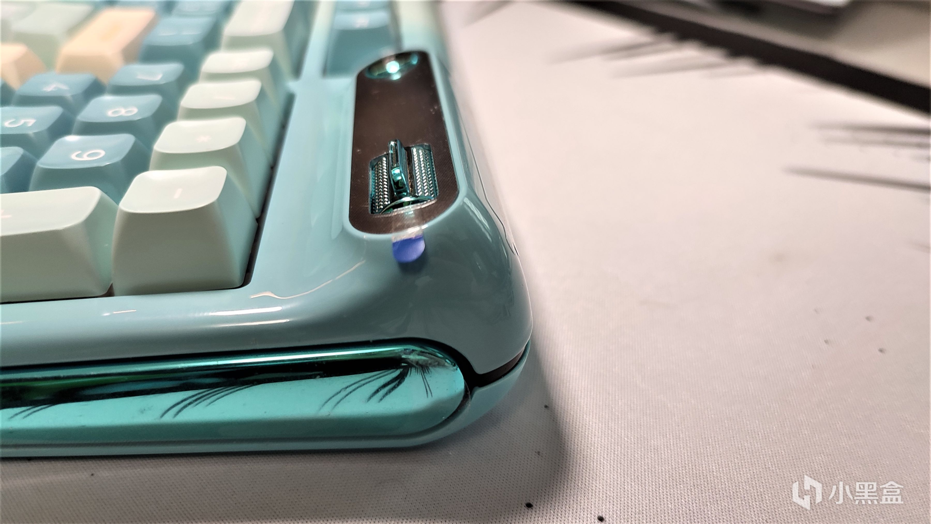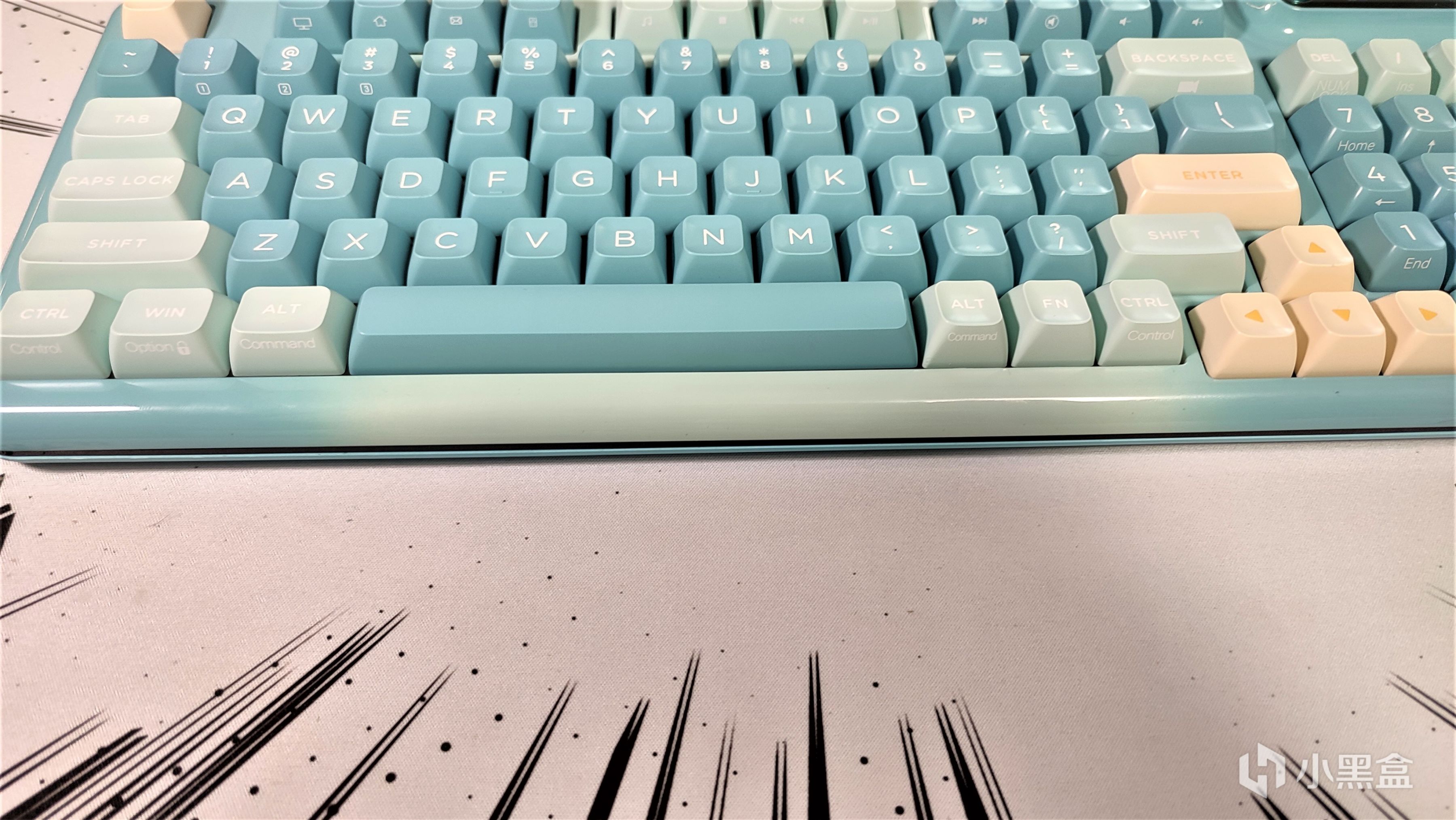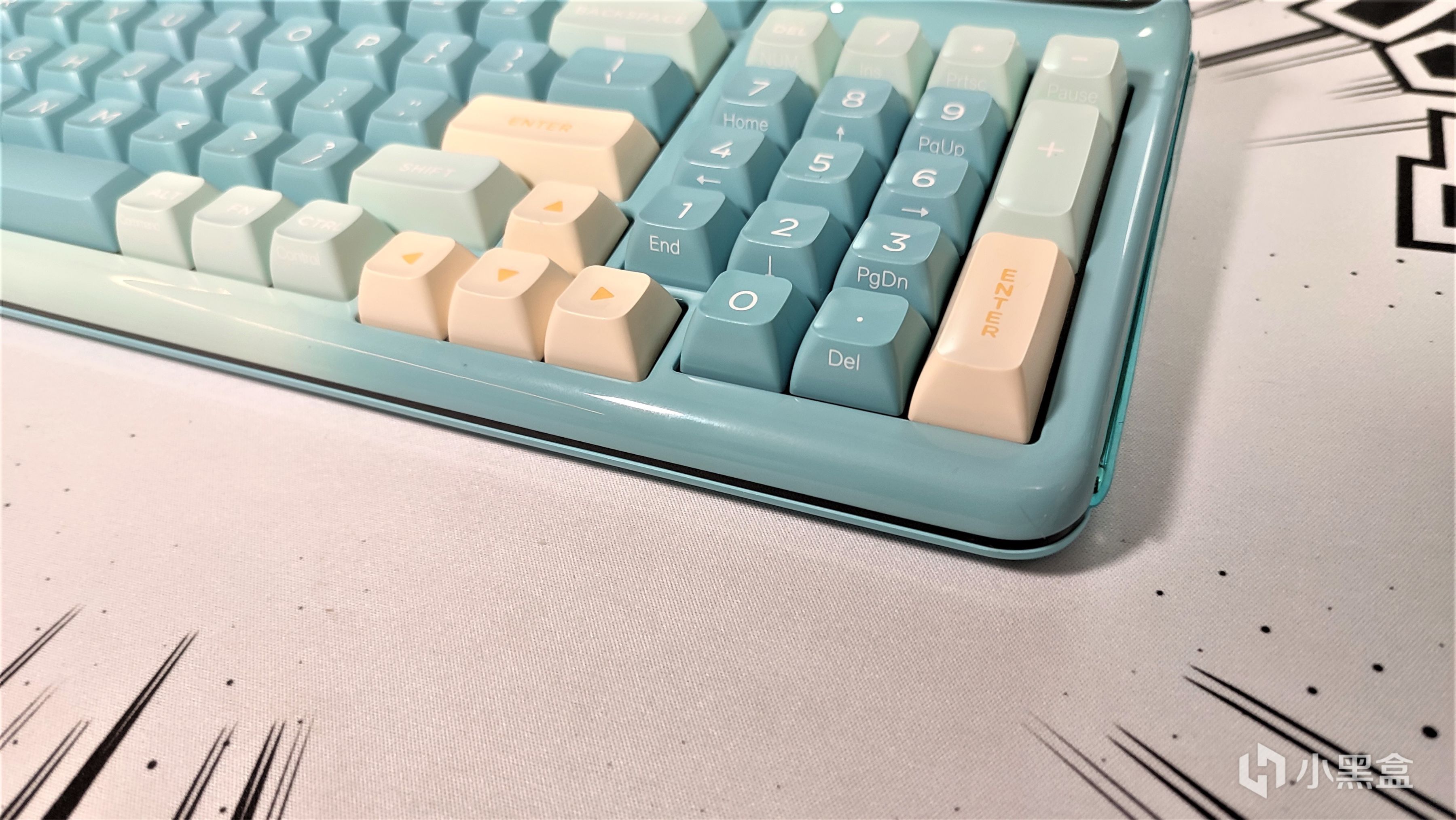 外殼採用了漸變噴漆外加高亮UV防刮噴塗,整體雖然說還是塑料外殼但是實際質感跟塑料相差甚多,同時這個漸變色也很好的映襯了鍵帽的主題,從藍色一直過渡到稍微透着一點藍色的白色,整體色彩搭配不會顯得很單調。