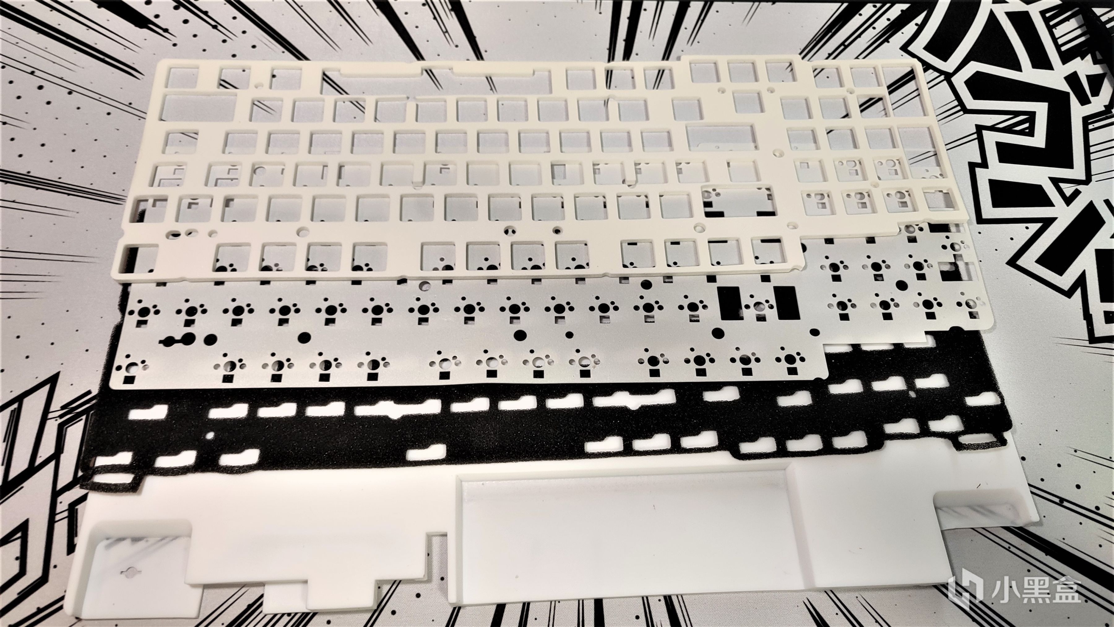 前側面和後側面都能看到圍着一圈黑色中框,這種設計之前應該更多見於客製化鍵盤上,好處就是看着不會顯得太素太單調,同時也可以讓內部空間更加充裕可以填充更多聲音包。