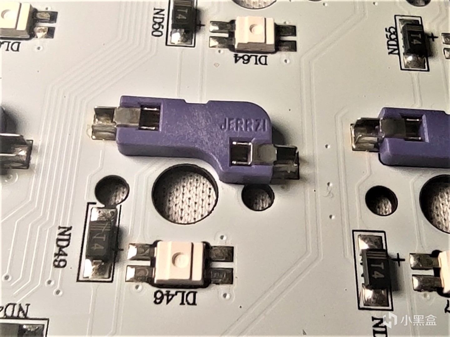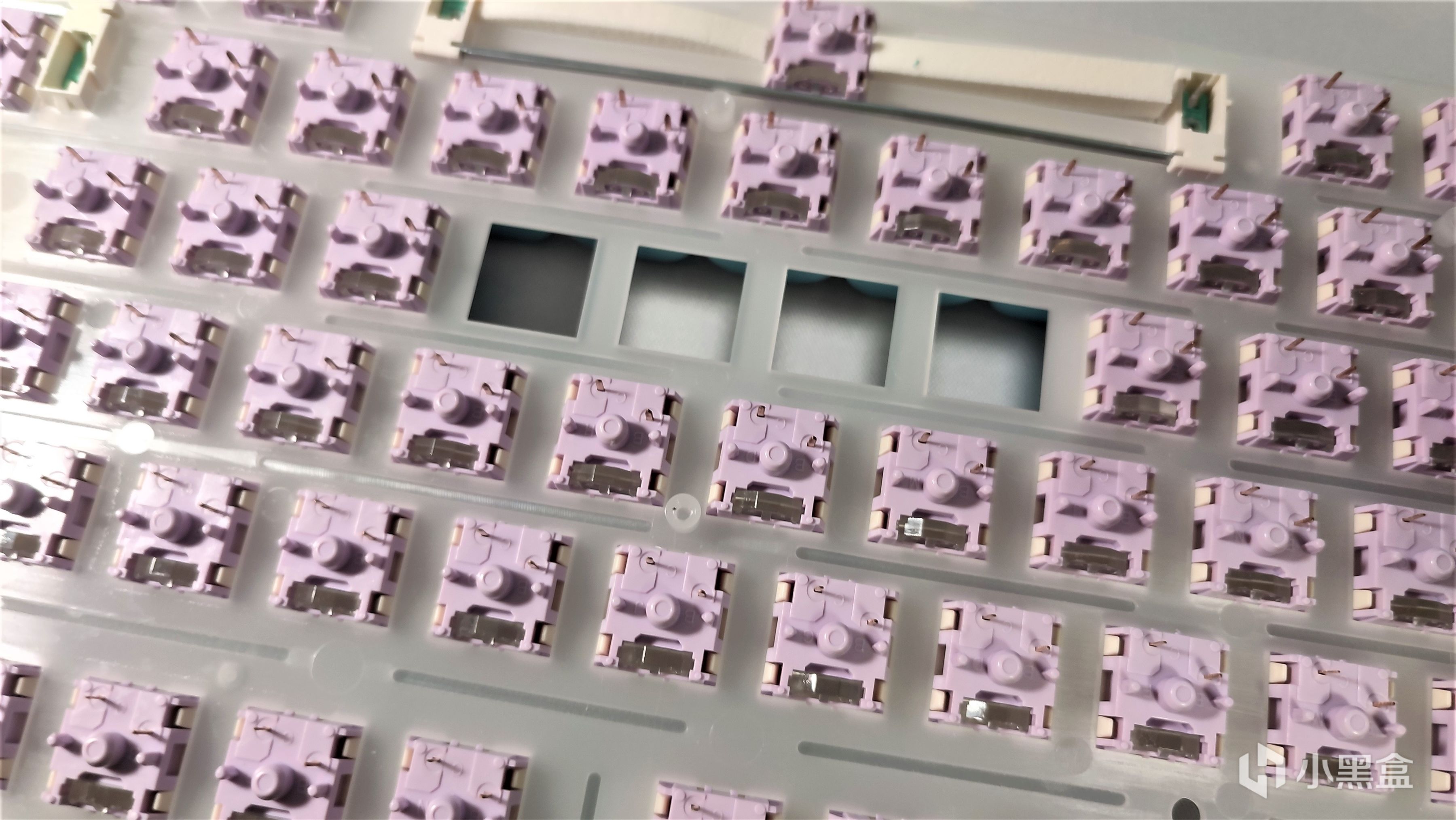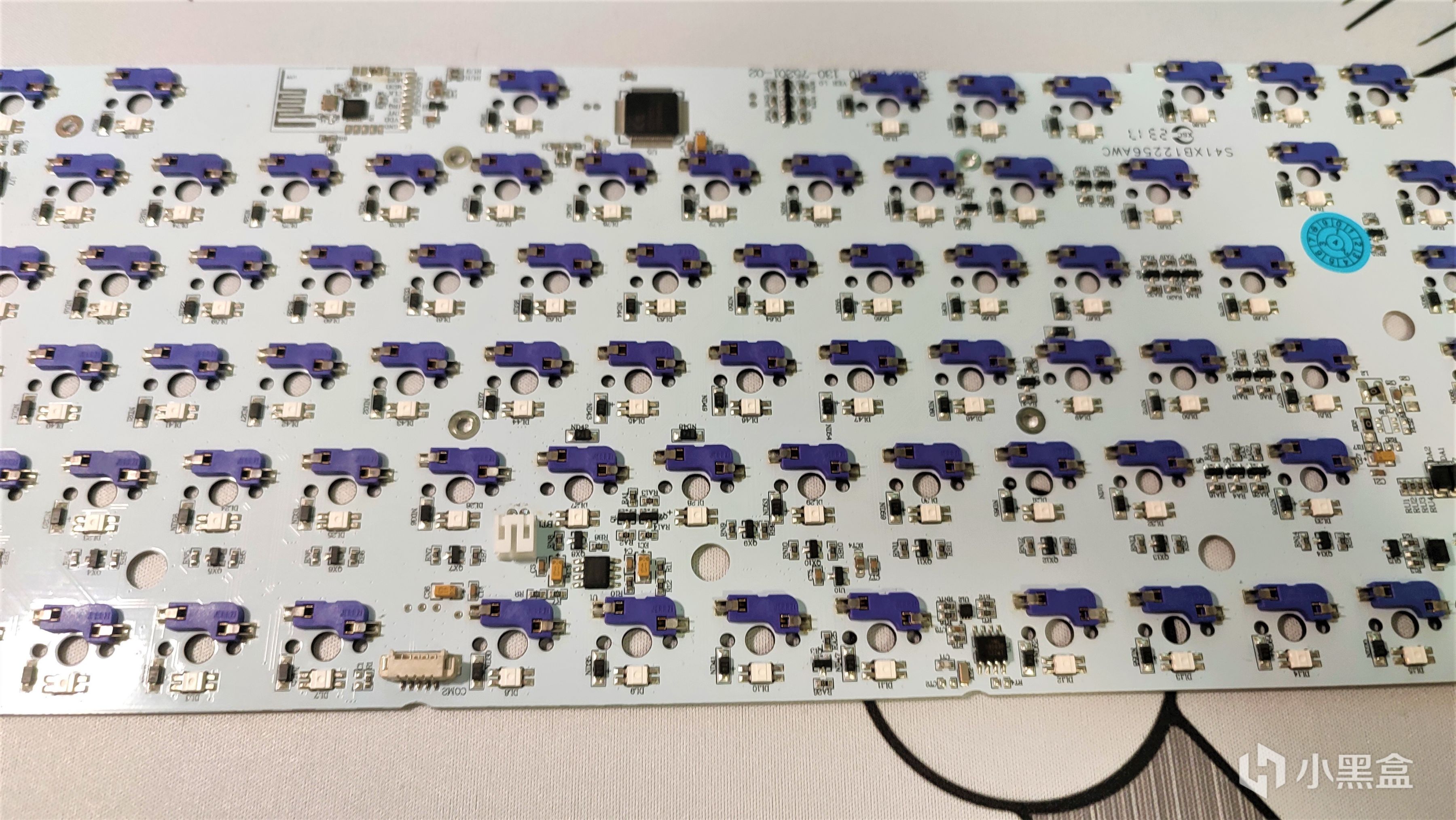 PCB採用的是軸座熱插拔,支持三腳/五腳機械軸體熱插拔,整體採用的是上燈位,基本主流機械軸體以及鍵帽都能兼容,軸座品牌則是九紫。同樣因爲出的時間較早,並沒有採用目前主流的單鍵開槽配置。