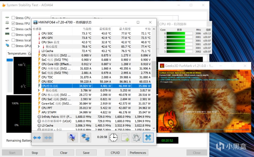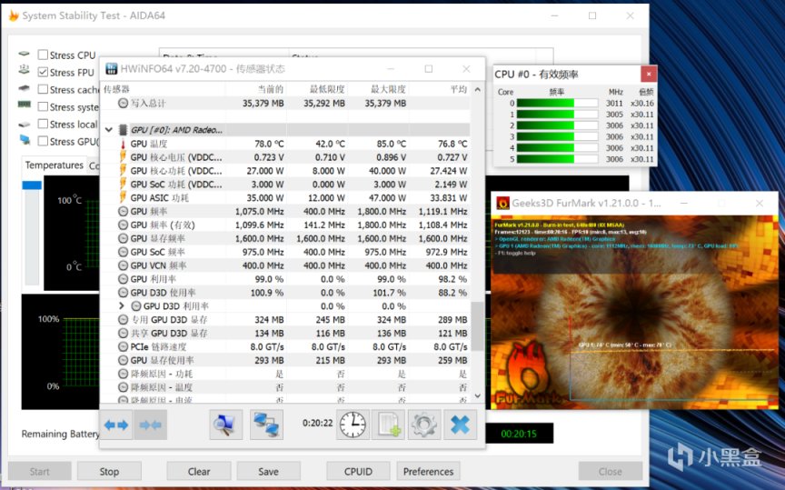 雙烤20分鐘,AIDA64 Stress CPU+Furmark顯卡