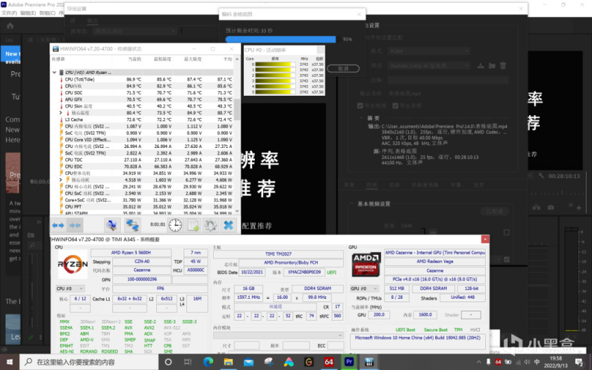 只靠R5 5600的CPU剪輯4K長視頻實在太慢了,PR如果沒有N卡的顯卡加速支持,建議還是用來輕度使用吧。