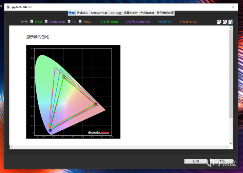97%的sRGB,72%的AdobeRGB ,74的%P3。