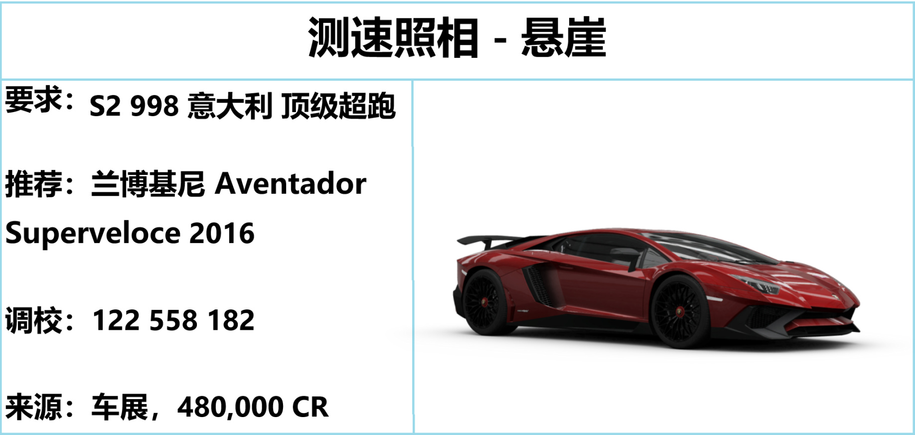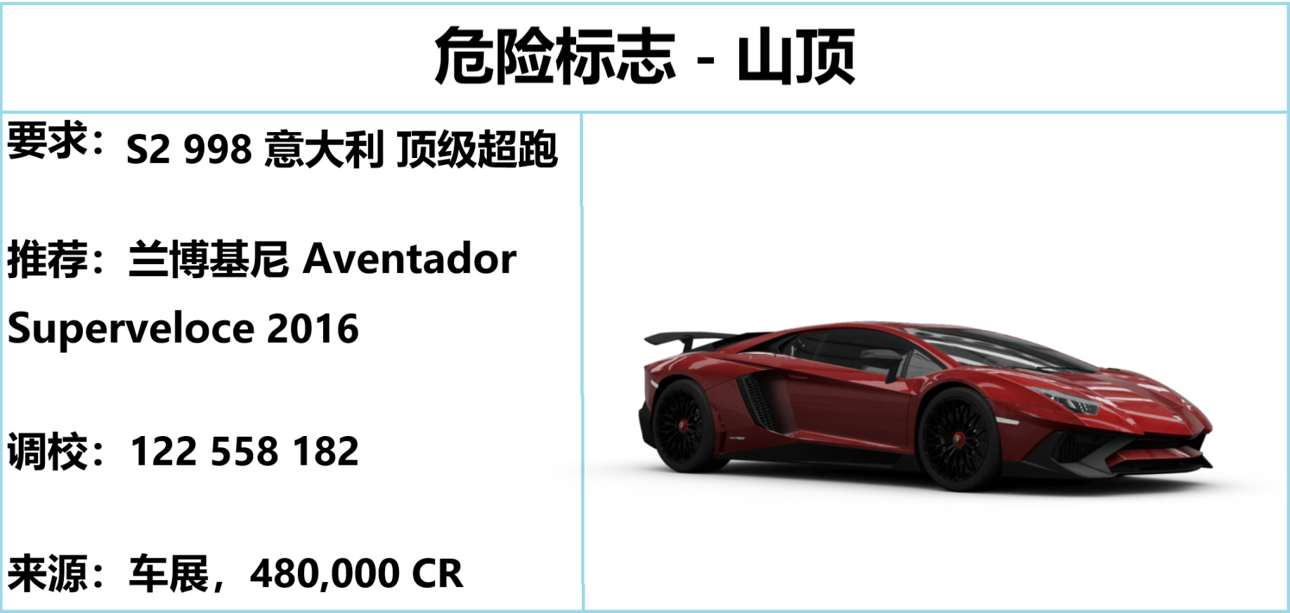 注意:特技賽的蘭博基尼 Aventador 和 EVENTLAB 中的並不一致,及時更換以免無法完成內容。