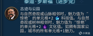它能給周圍地塊+1魅力,它提供的住房取決於本地塊的魅力,後續建築給周圍地塊提供的額外產出取決於周圍地塊的魅力....