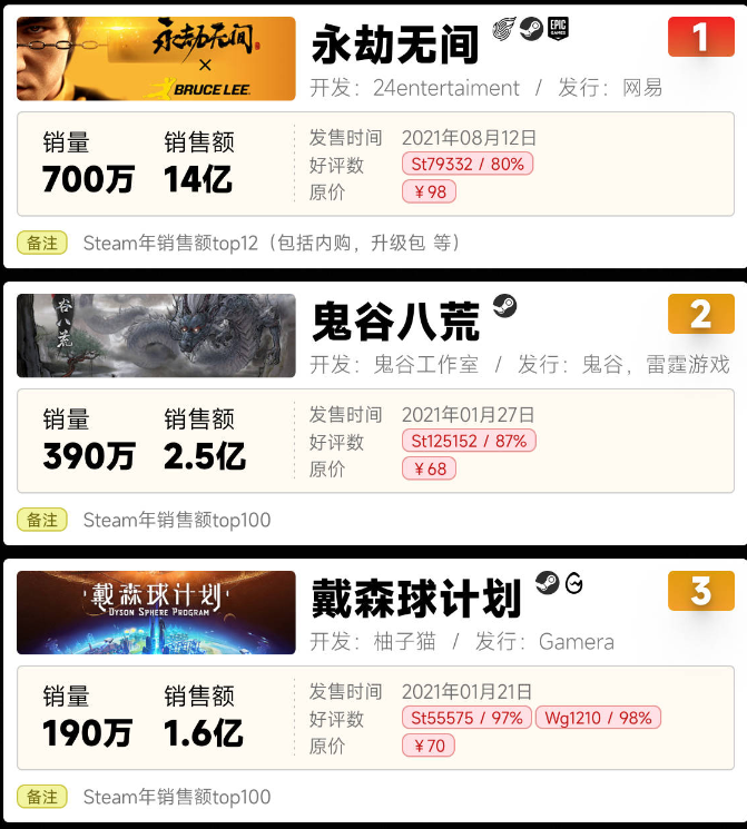 巔峯在線人數超17萬,上線一月有餘,遊戲銷量破180萬,上線一年後,累計銷量破390萬,銷售額約2.5億。