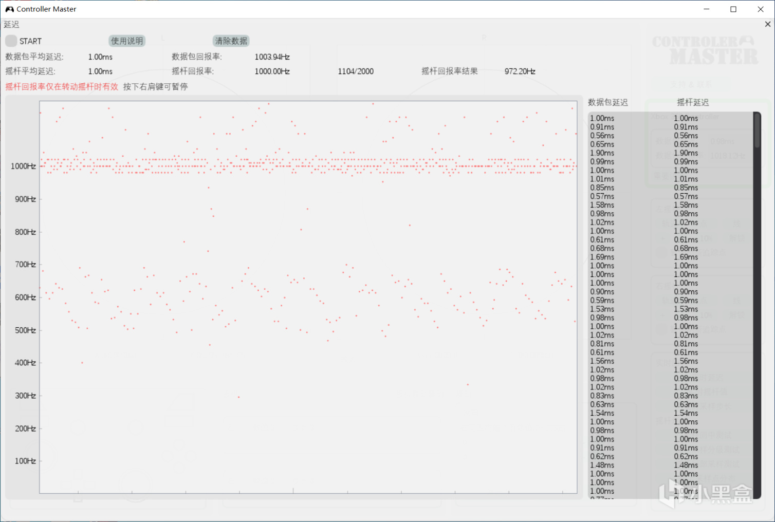 最後再來說一下這款手柄的頂級之處,在有線模式下整體回報率可以達到1000HZ,同時搖桿回報率也差不多可以達到1000HZ左右,因爲實際設備以及各種因素影響可能會稍差一點。