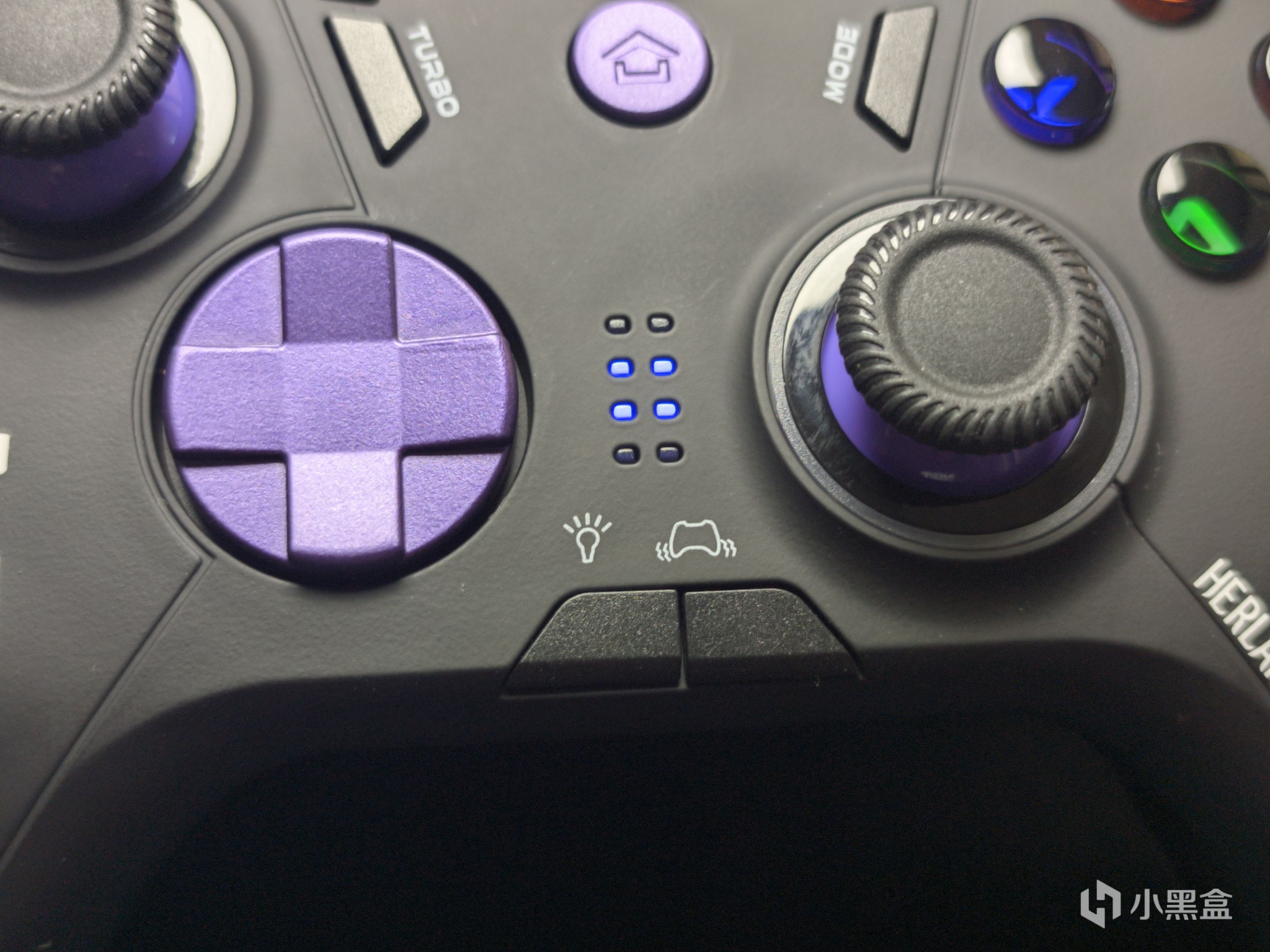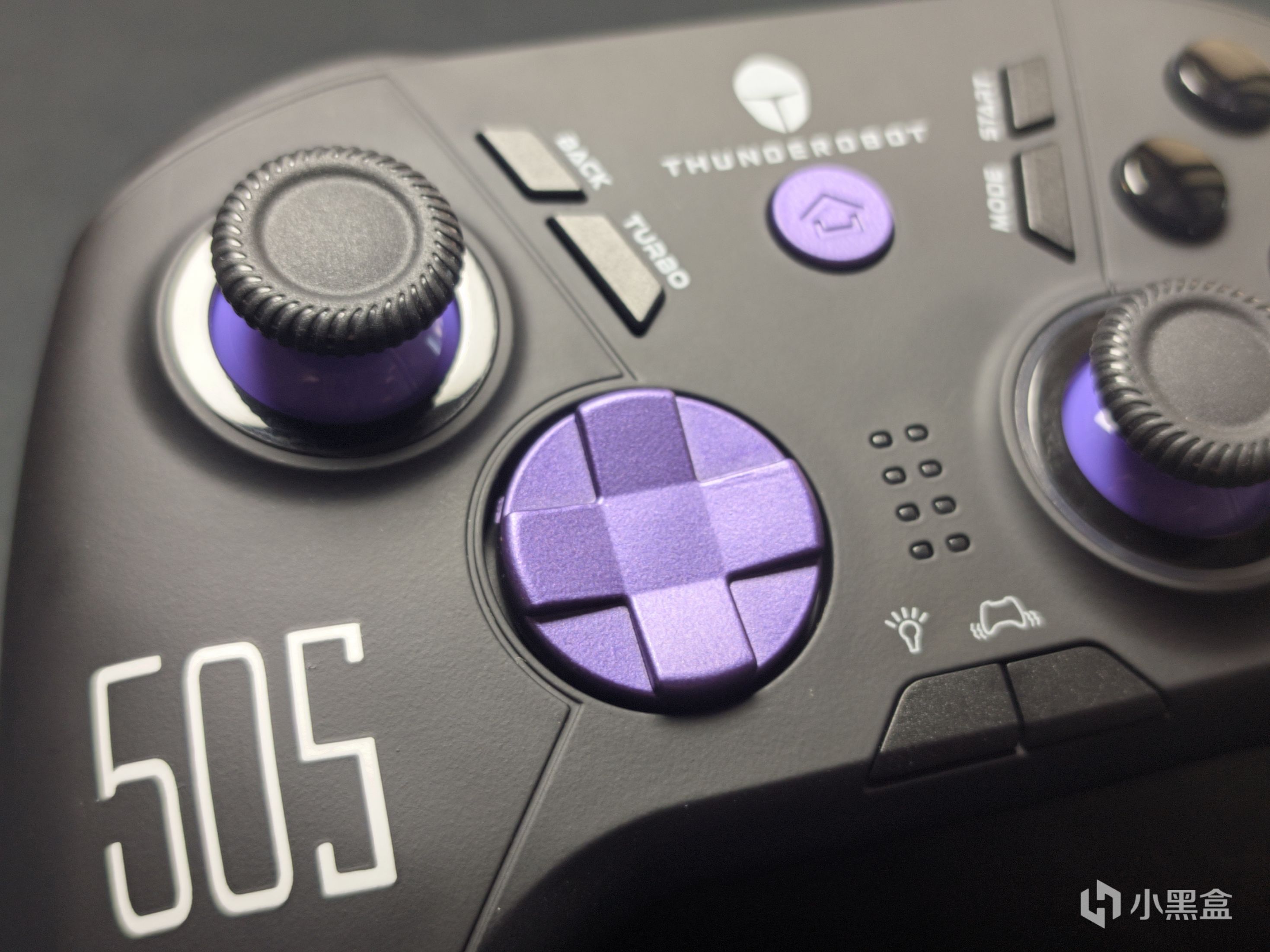 十字鍵爲xbox series手柄同款的款式,採用的是進口ALPS鍋仔片,八個方向的按鍵手感都非常不錯,不是那種比較肉的觸感,而是類似於電燈開關的那種機械手感,觸發也十分靈敏。從外觀上可以看出來是一種金屬紫色,但觸感卻十分細膩,完全摸不出來是金屬。