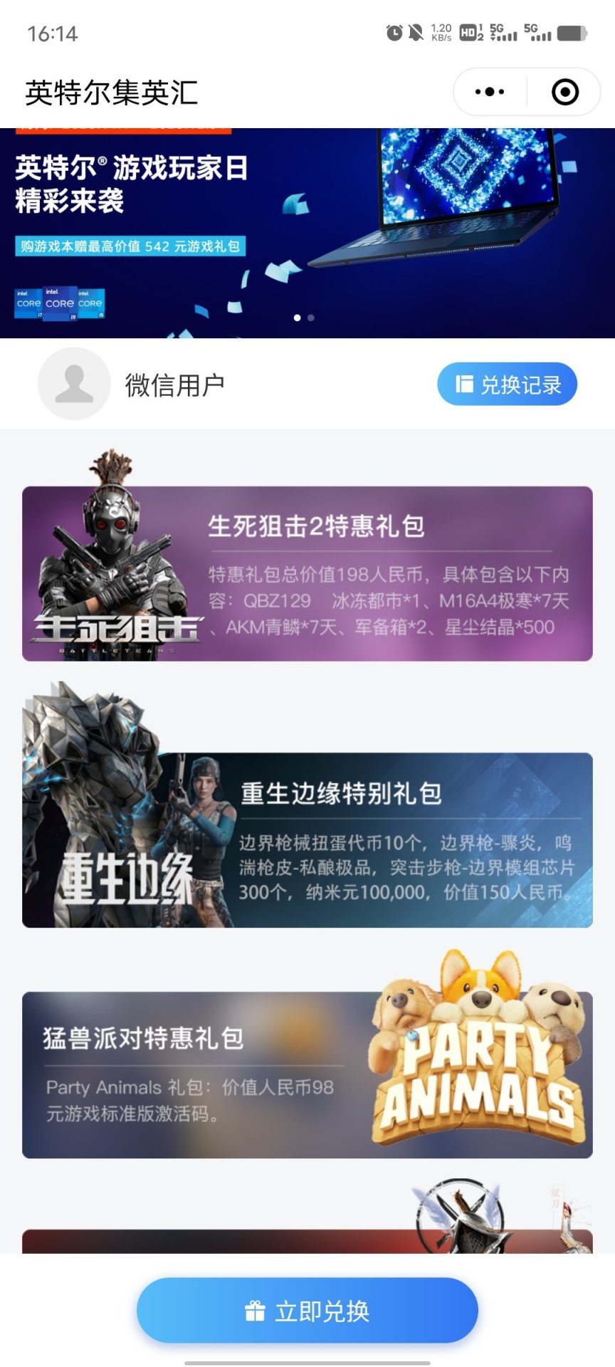 英特爾遊戲玩家日活動,在2023-11-01至2023-12-31日期間,擁有英特爾產品的玩家可以領取包括動猛獸派對在內的遊戲大禮包。
