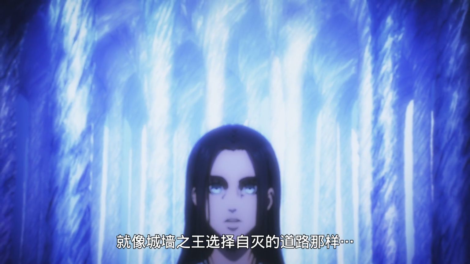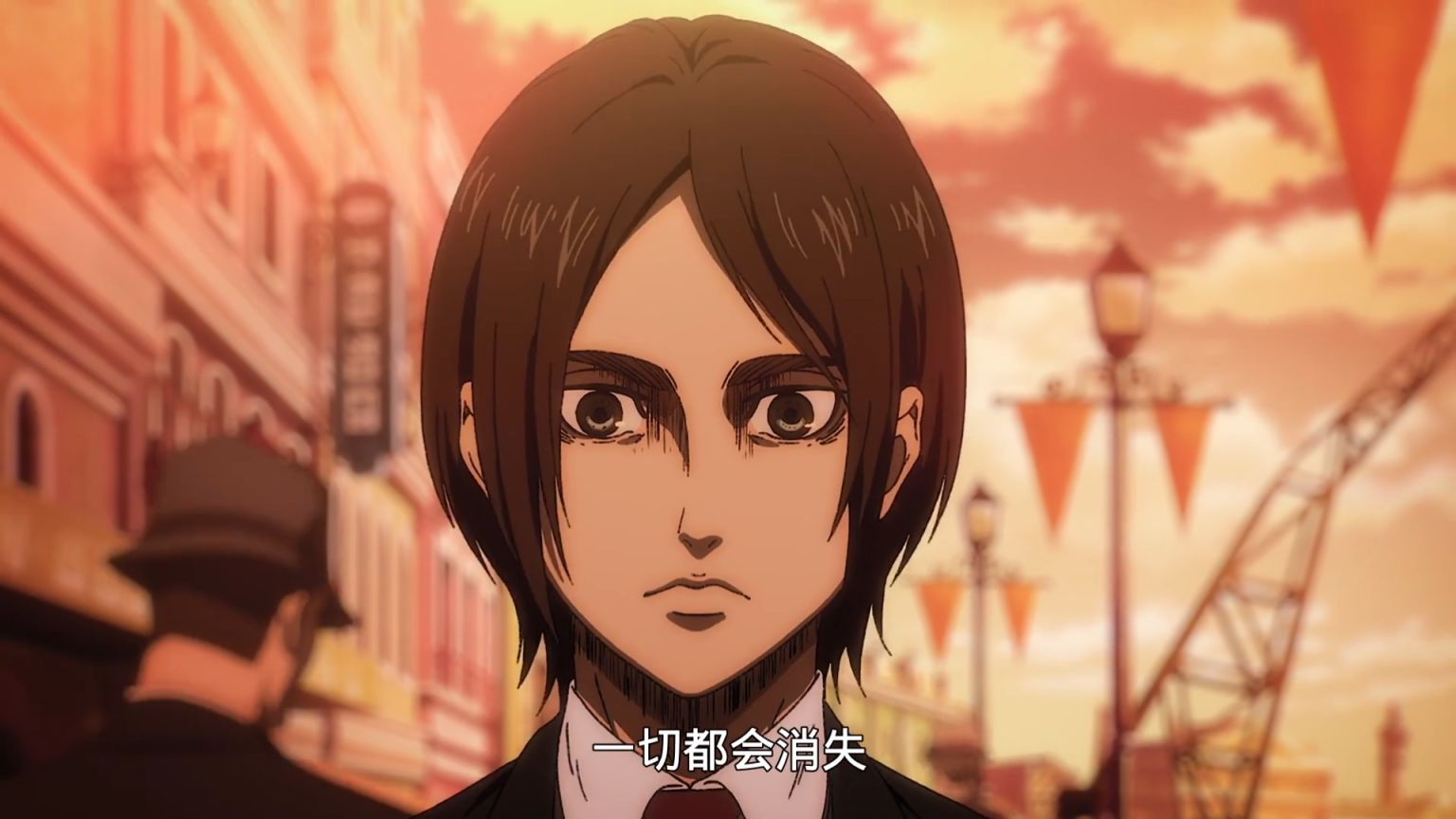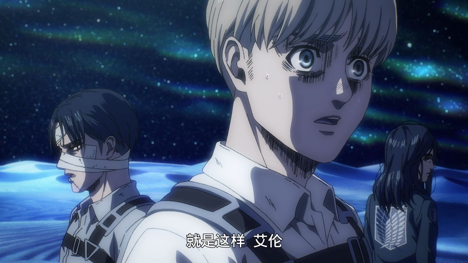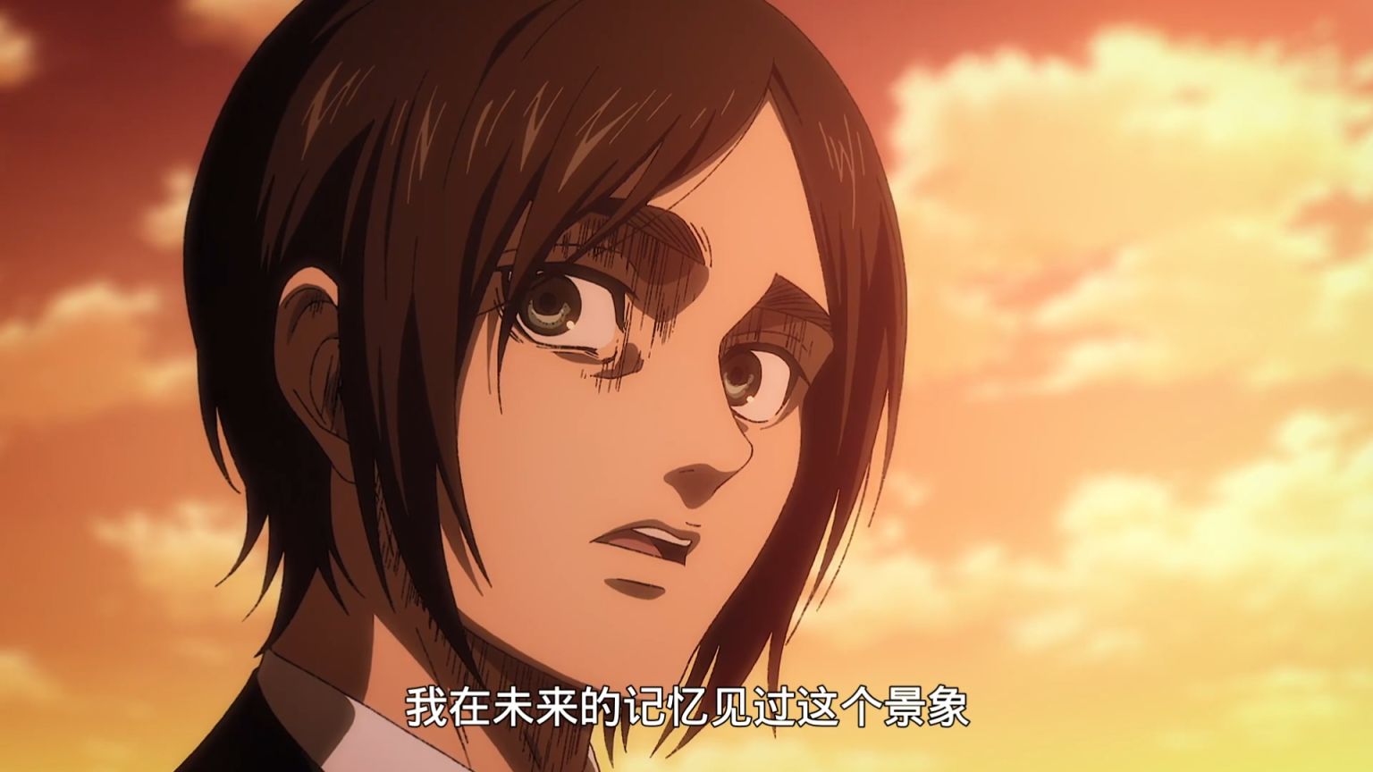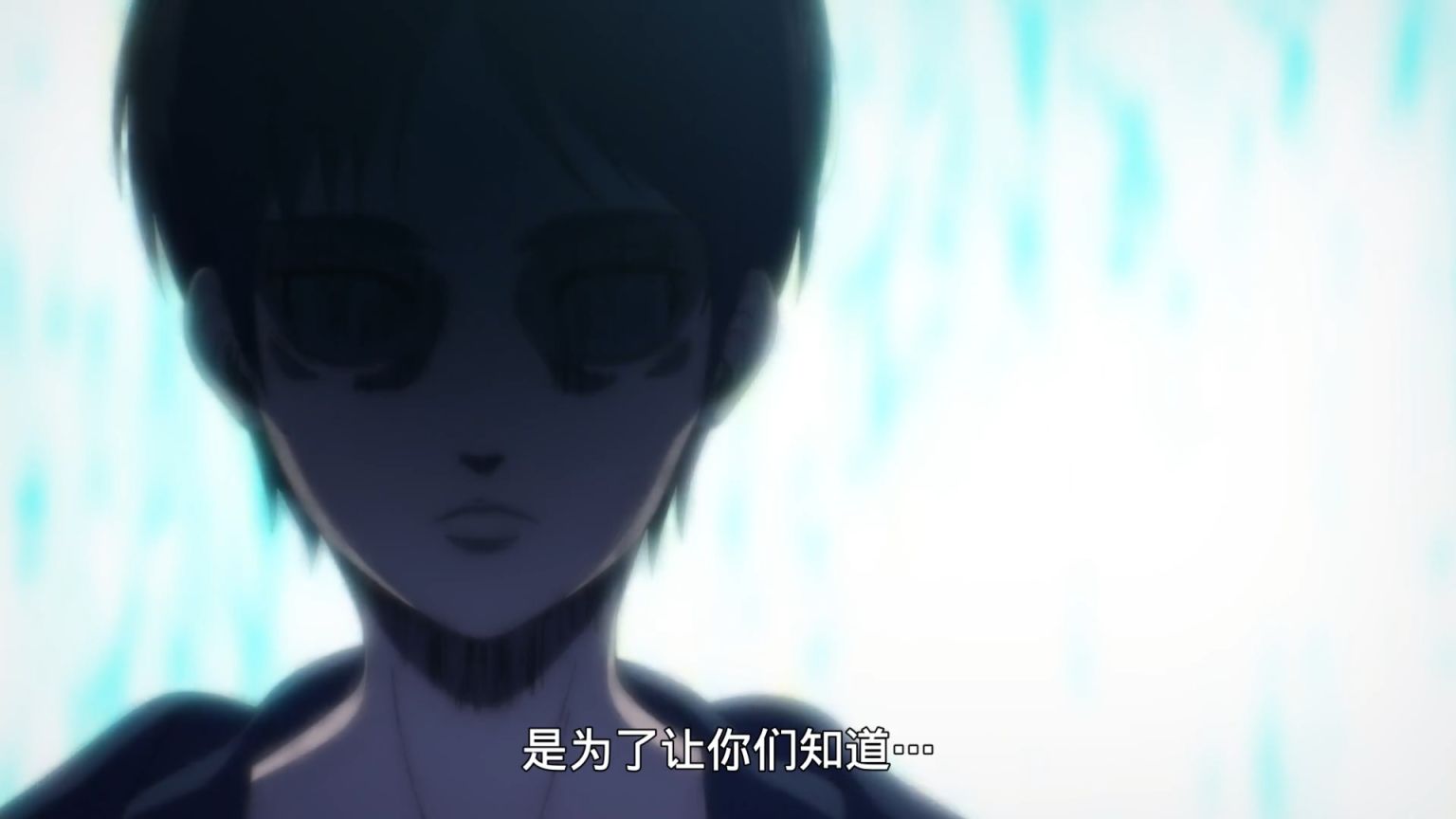 本篇開始就列舉了一段艾倫知曉未來自己將發動地鳴的片段,並對那些將無辜慘死的人,心中充滿了懺悔。