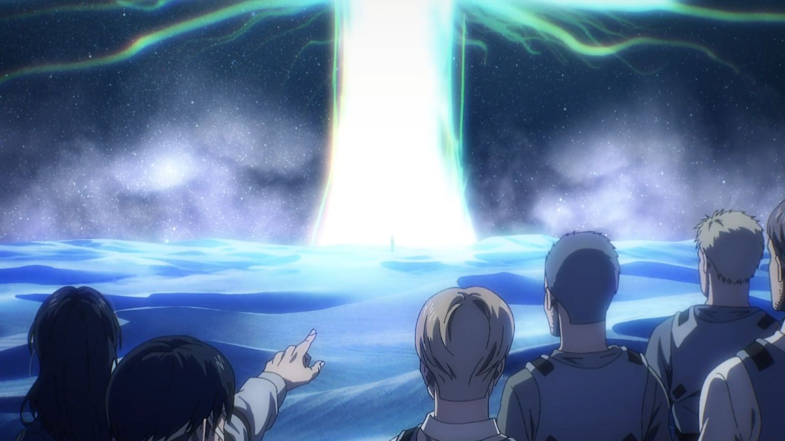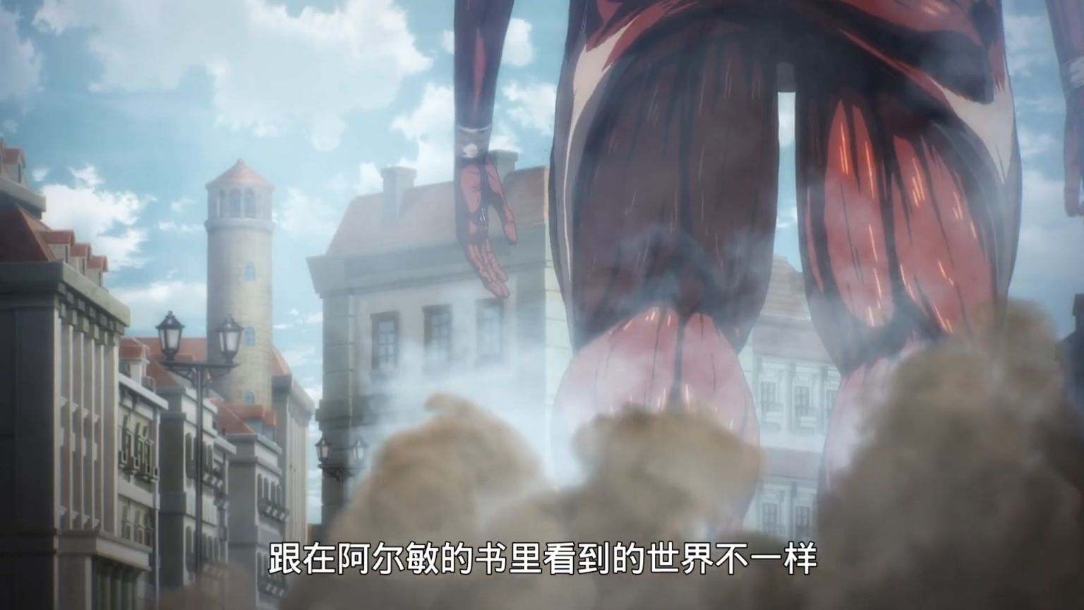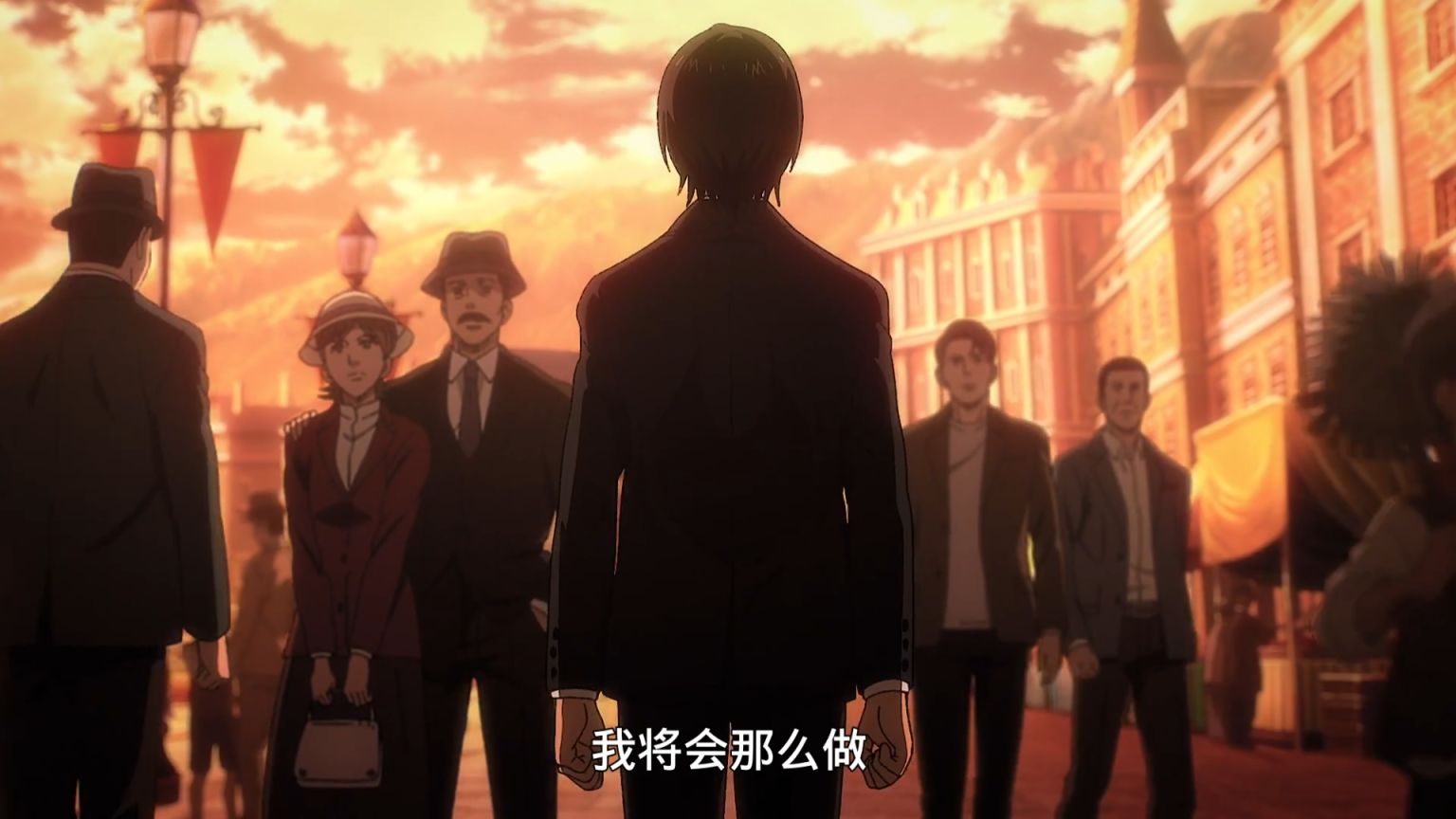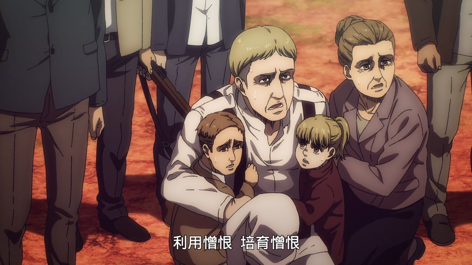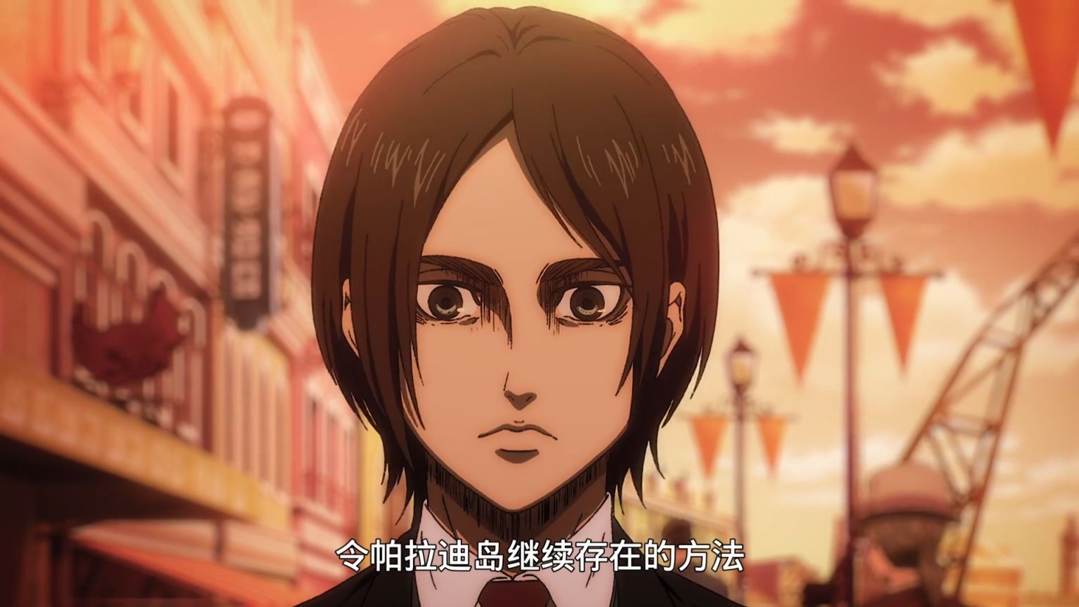 本篇開始就列舉了一段艾倫知曉未來自己將發動地鳴的片段,並對那些將無辜慘死的人,心中充滿了懺悔。