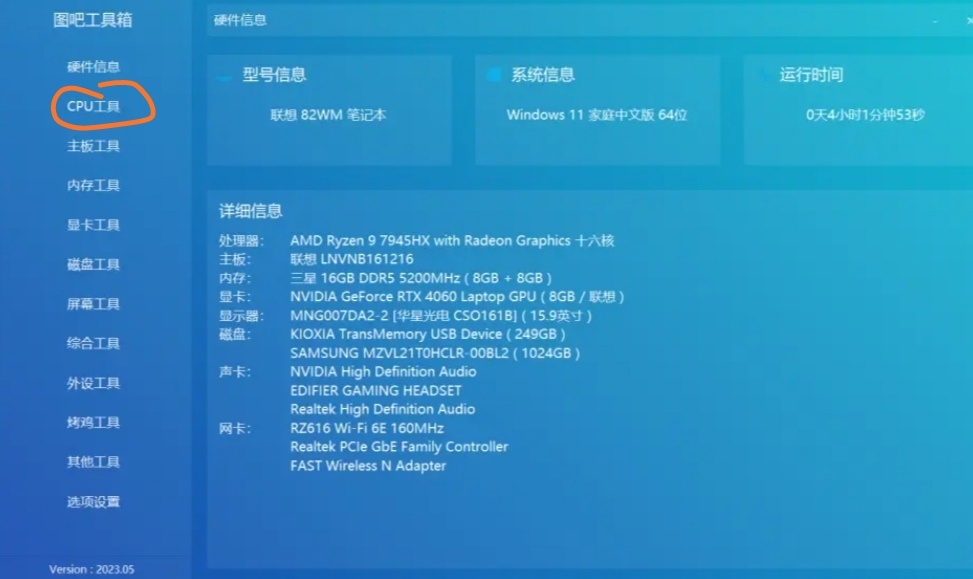 工具齊全,集成了硬件信息、CPU工具、內存工具、顯卡工具、硬盤工具、屏幕工具、綜合檢測等十幾種類型的工具。