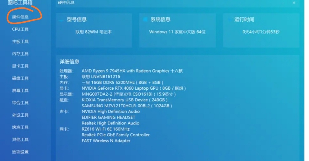 打開軟件後選擇左上角的硬件信息,看看和你所買的有沒有差別。避免商家發錯或者是翻新機器。