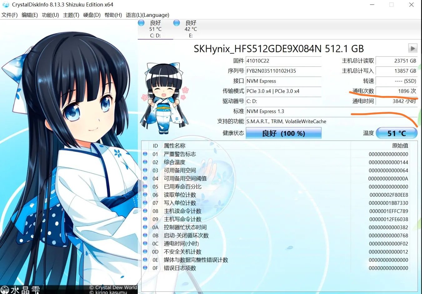 然後較爲重要的就是查看硬盤通電時間以及次數了!這可以很直觀的查看你的電腦究竟是不是新機