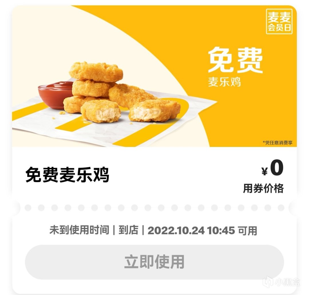 星期一是mdl會員日,只要你去消費,就可以獲贈麥樂雞!