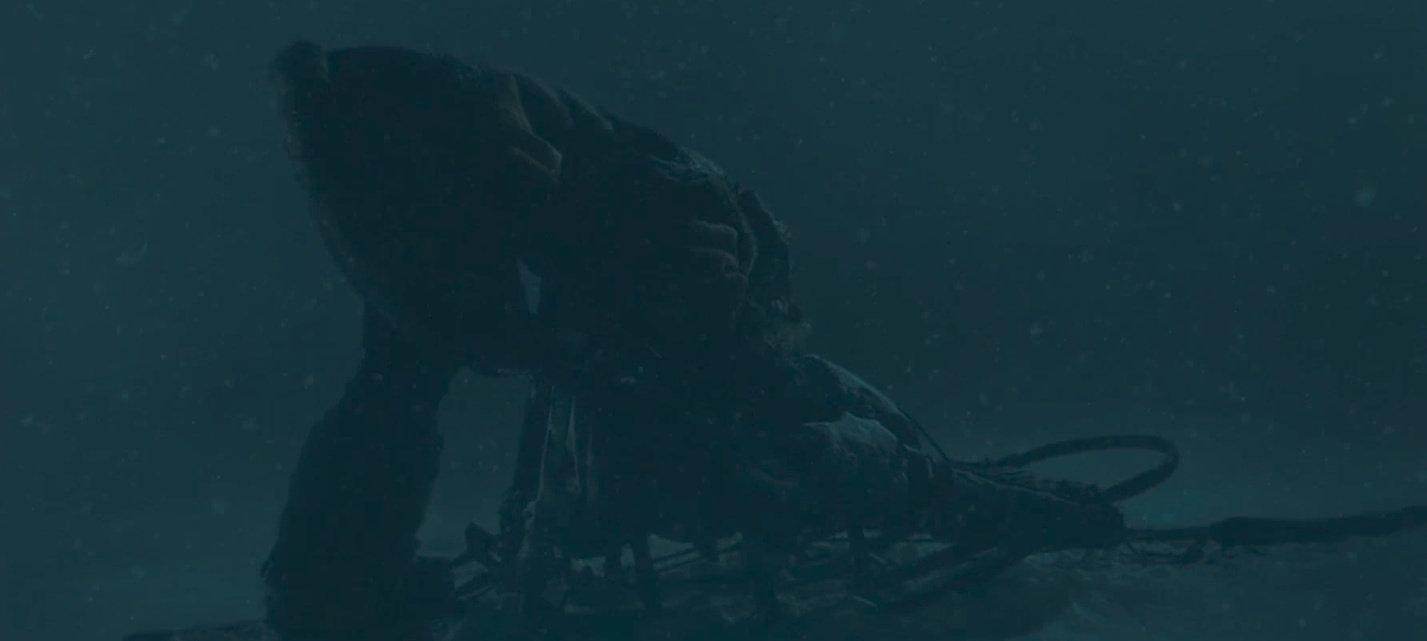 縱使死裏逃生,但和大自然的角力還遠沒有停止,垂垂老矣的不止多哥,還有賽裴拉,連續的精神緊繃、連續的透支身體擊垮了這個老人,他在暴風雪中倒在雪橇上失去意志,只能靠多哥帶領隊伍。