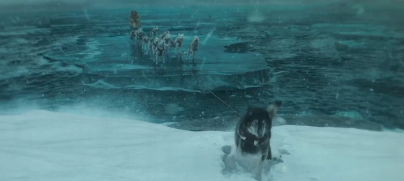因爲不停的暴雪,賽裴拉的視野被阻擋,險些和雪橇隊一起滑入深淵,所幸多哥及時發現並以讓一條腿受傷的代價救回了所有的雪橇犬和賽裴拉。