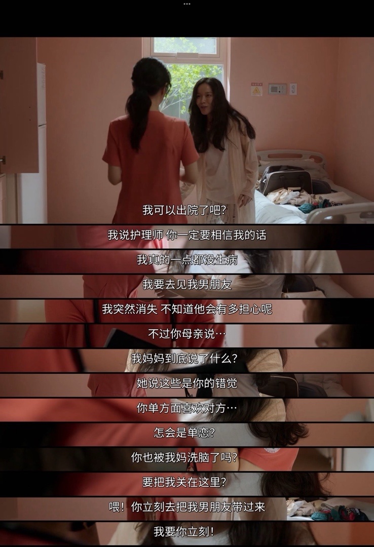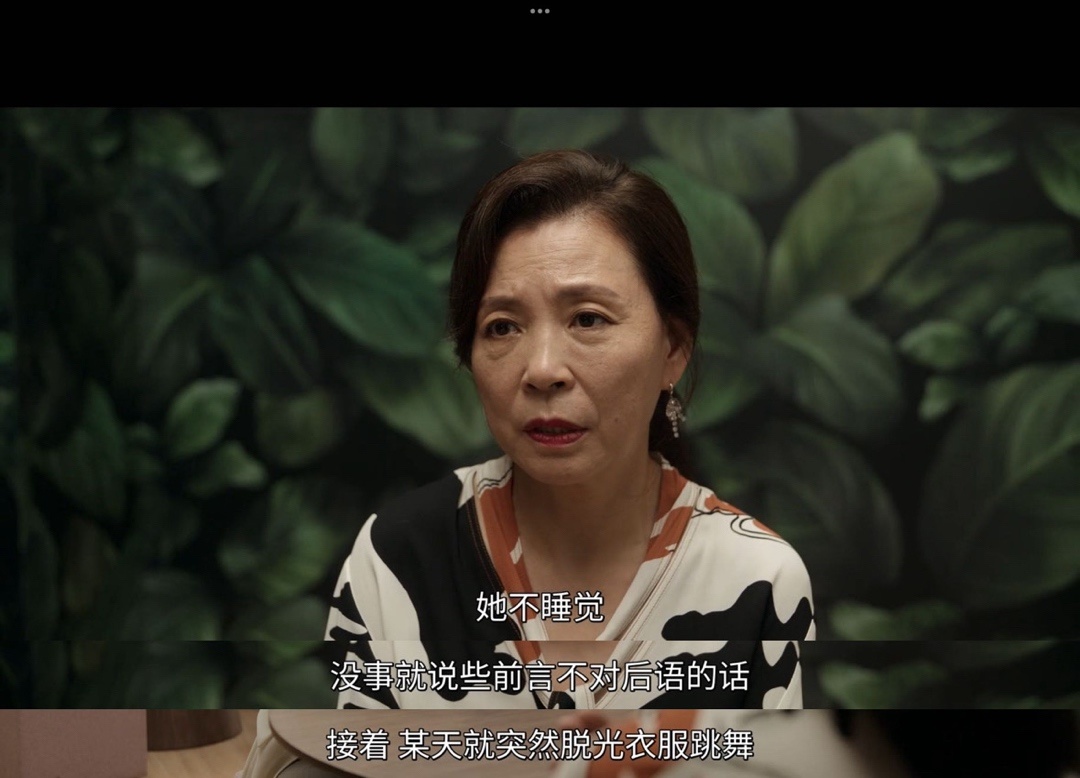 女主被派去給她檢查身體之間的對話可以很明顯看出來吳莉娜的躁症很嚴重,甚至可以說一點就炸。