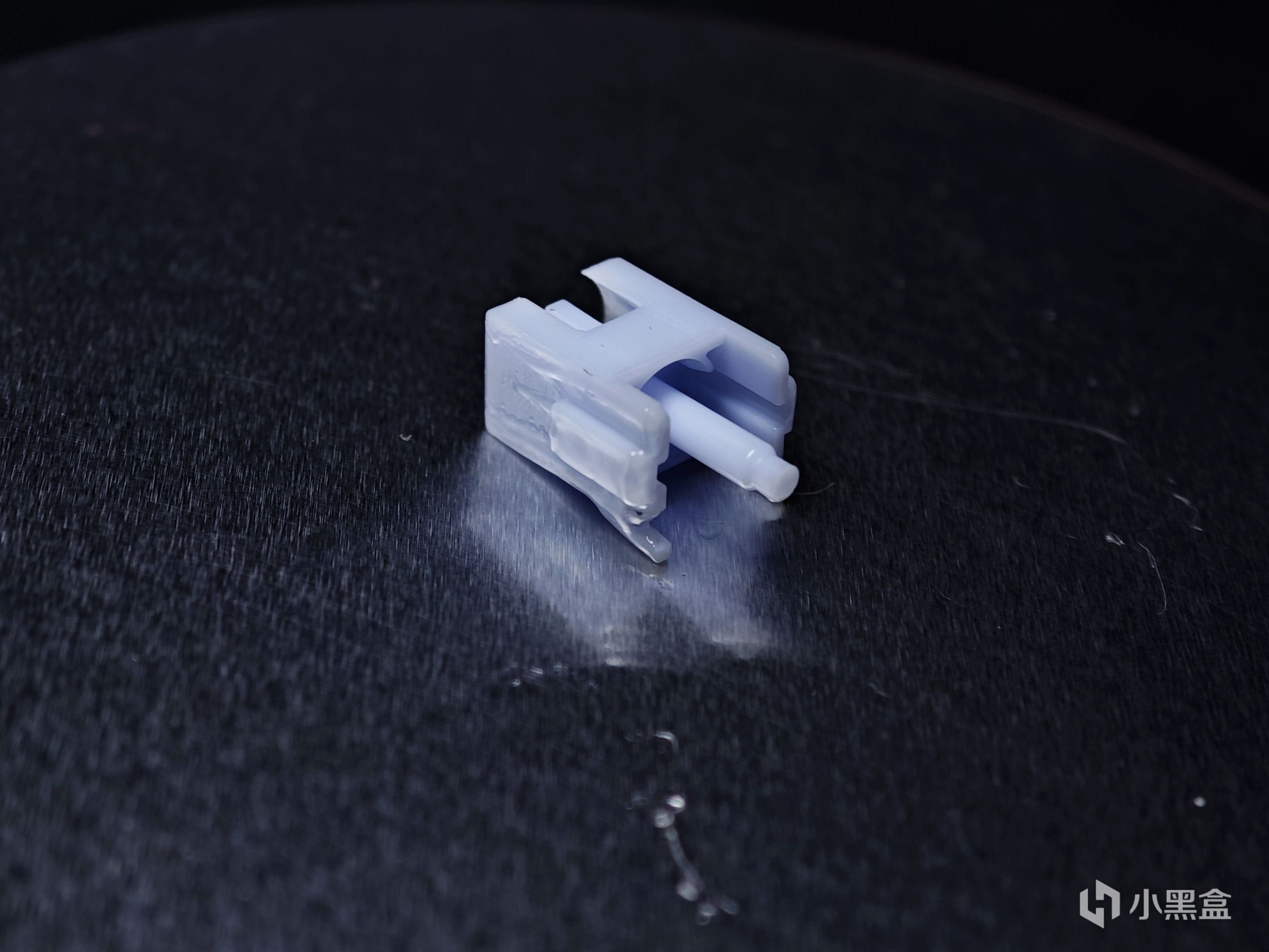 軸芯方面,正如前面所說,沒有添加防塵壁,但並不代表聲音就一定優於帶防塵壁的軸體,只不過聲音的集中程度會更高。同時可以看到,雖然沒有添加防塵壁,但是五腳底殼是有配備的。整體材質構成爲:POK上蓋+POM軸芯+尼龍PA66+30%玻纖(或者說PA30),整體的順滑度方面非常不錯,即使是有摩擦音也很小。