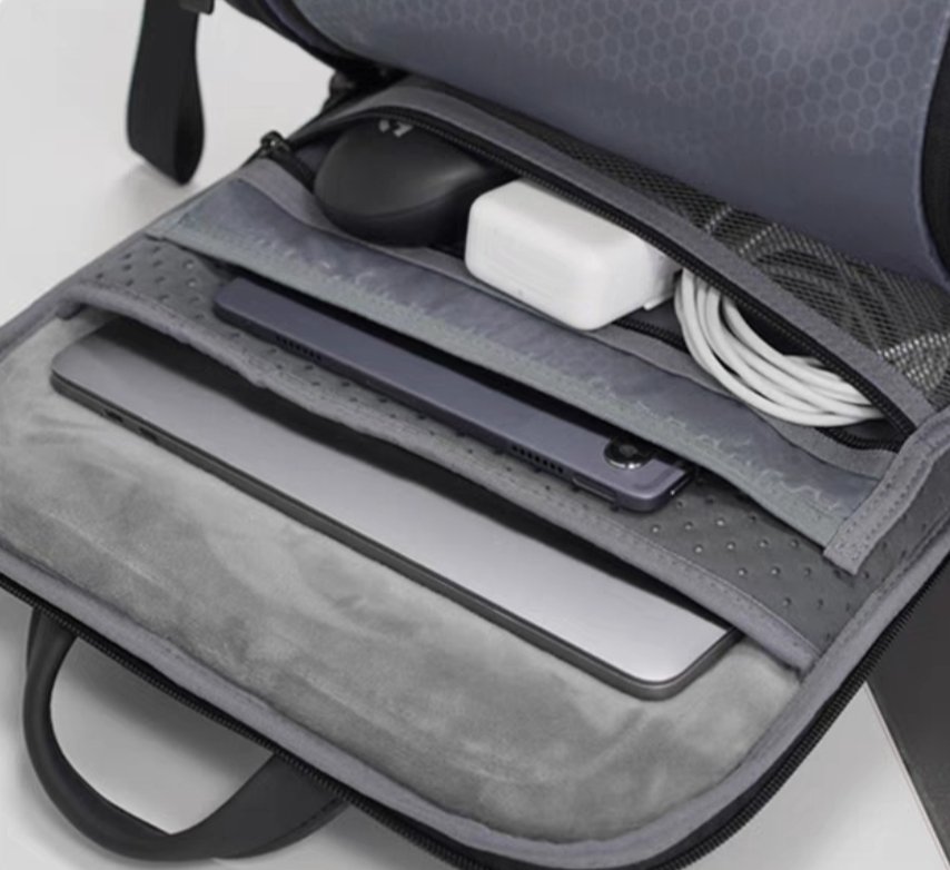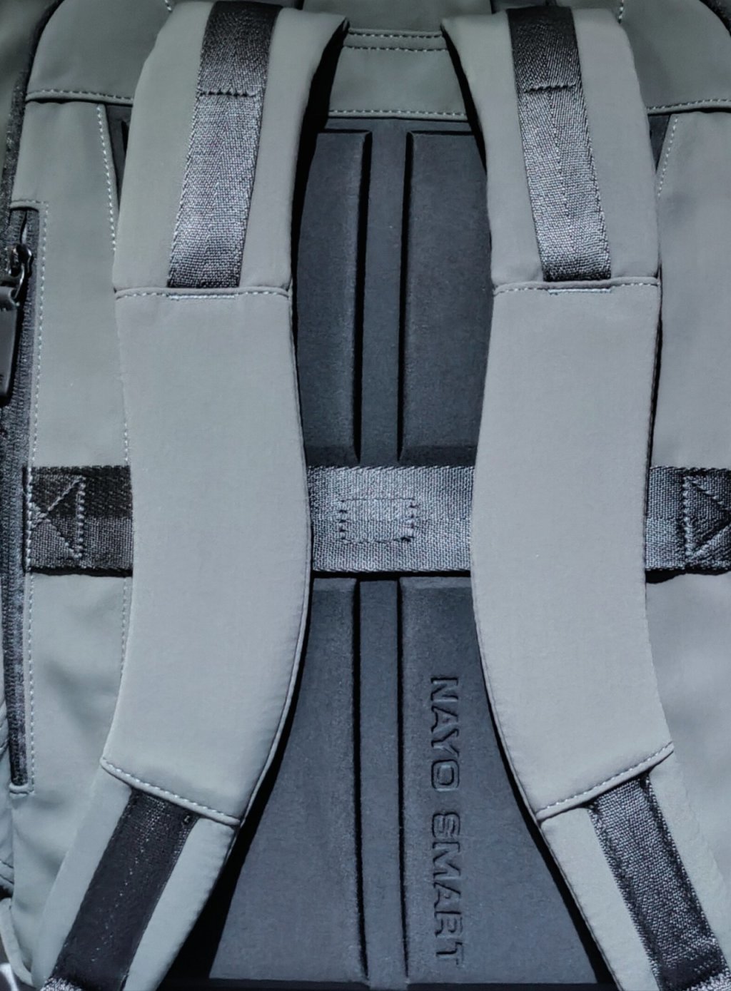 在揹包的背部擁有一個獨立的數碼倉,有一層加厚絨布和2mm厚eva作爲保護以及減震,360全方面保護。而且底部有防撞條設計,我記得MAX版本的話還有魔術固定帶,可以更好地防止揹包的晃動,但我我畢竟窮,買不起嘛,就將就下啦