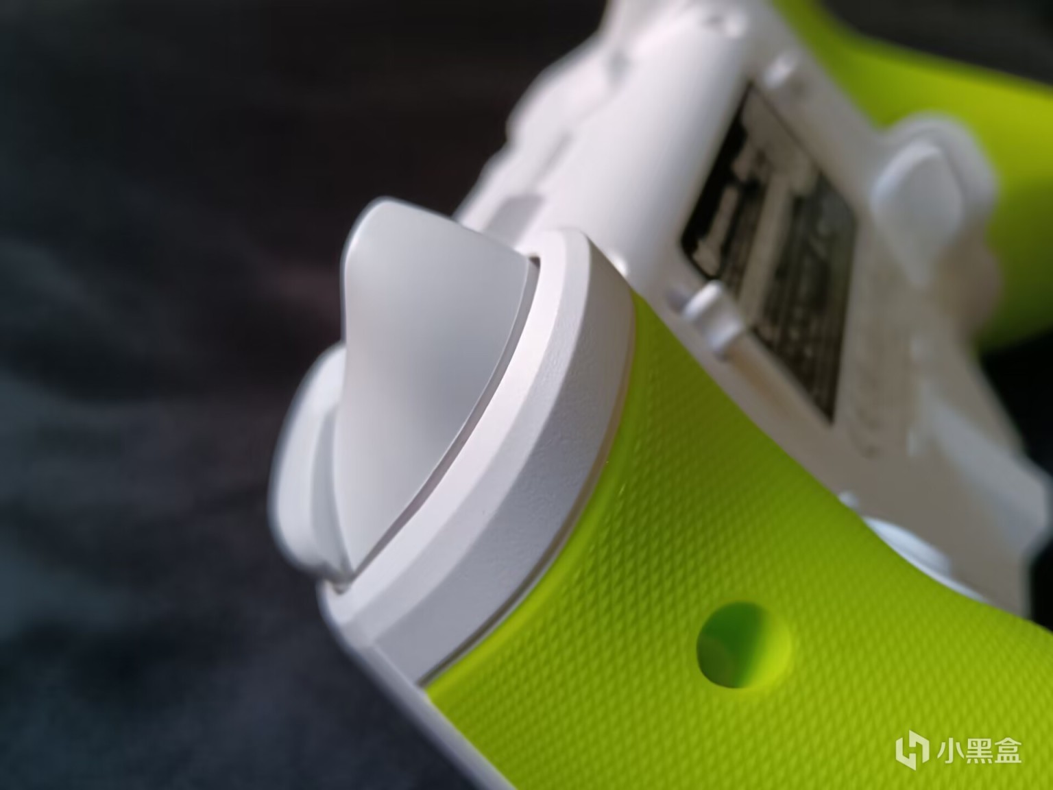 扳機方面也是看到了扳機鎖,是用來限位的,上推扳機鎖之後,限制了物理扳機行程,最大行程是三分之一,短行程就比較適合一些射擊遊戲,長行程就比較適合賽車遊戲,虛位方面大概是1-2mm,霍爾線性扳機,按壓手感均勻,跟手。