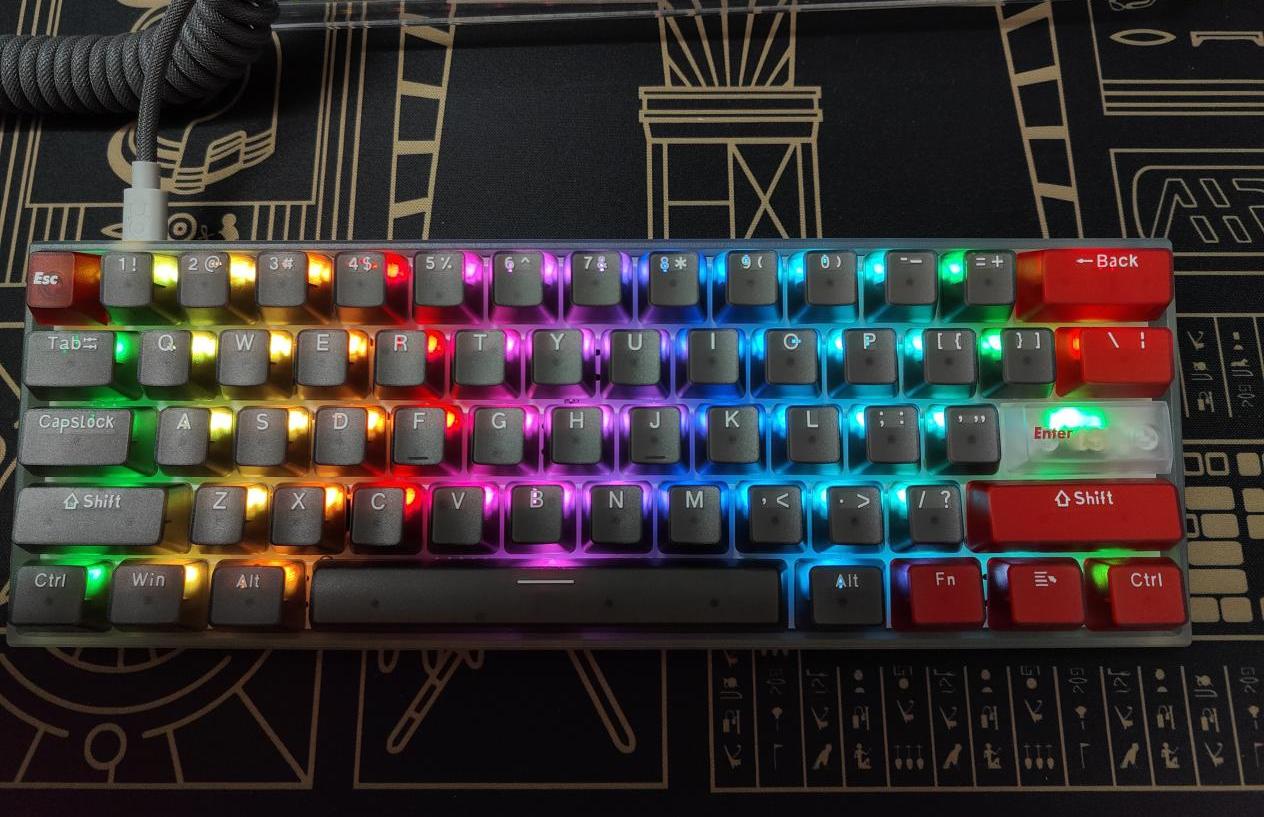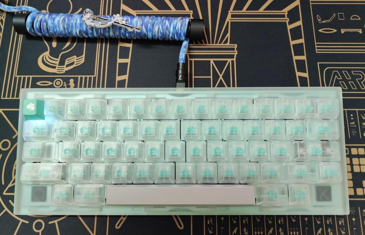 首先透明的“度”很重要,比如掀起透明鍵盤熱潮的洛斐1%,或者在透明鍵盤裏還算不錯的Firstblood 87,都是那種晶瑩剔透類型的。