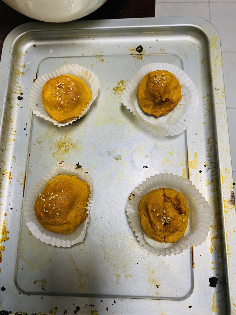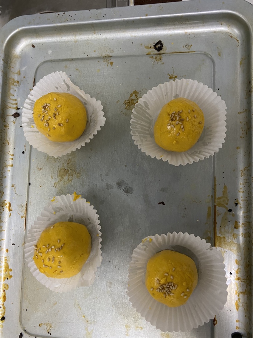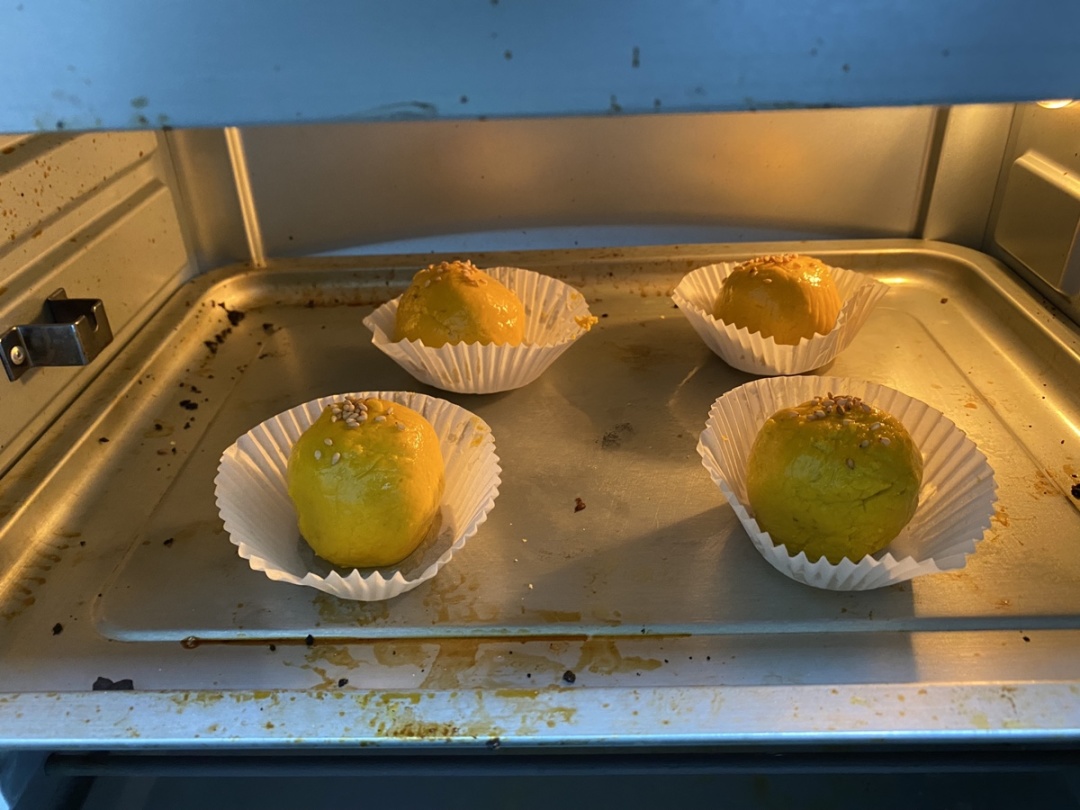 5.然後揉成團或者餅都可以,用烤箱的話需要在外面塗一層油,撒一點芝麻就可以進烤箱了,烤箱180°烤10分鐘,在下面撒點水再烤5分鐘就可以出鍋了