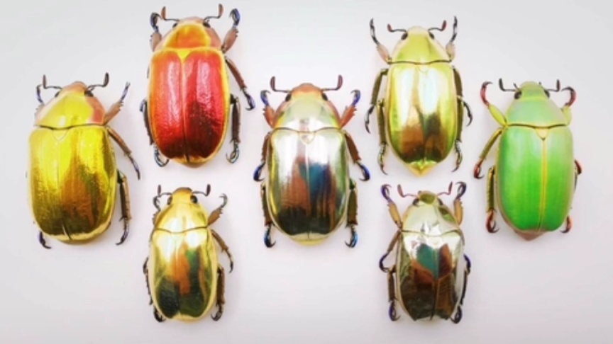 它們這種看似具有反射性的金屬外觀,其實是通過幾丁質層內的薄膜干涉而實現的。