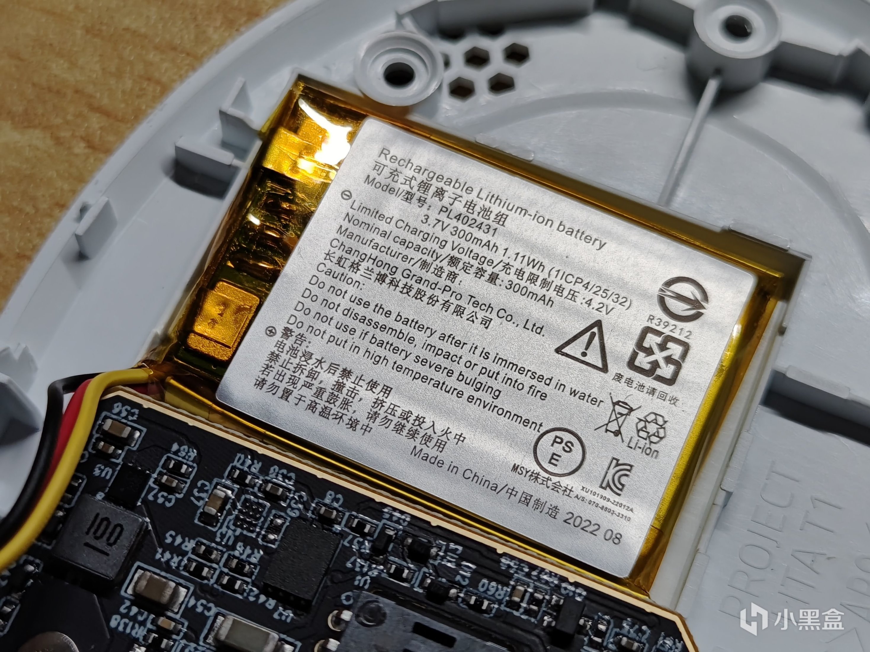 電池來自長虹格蘭博,長虹華意控股的專門做智能掃地機器人的子公司。容量有300mAh。