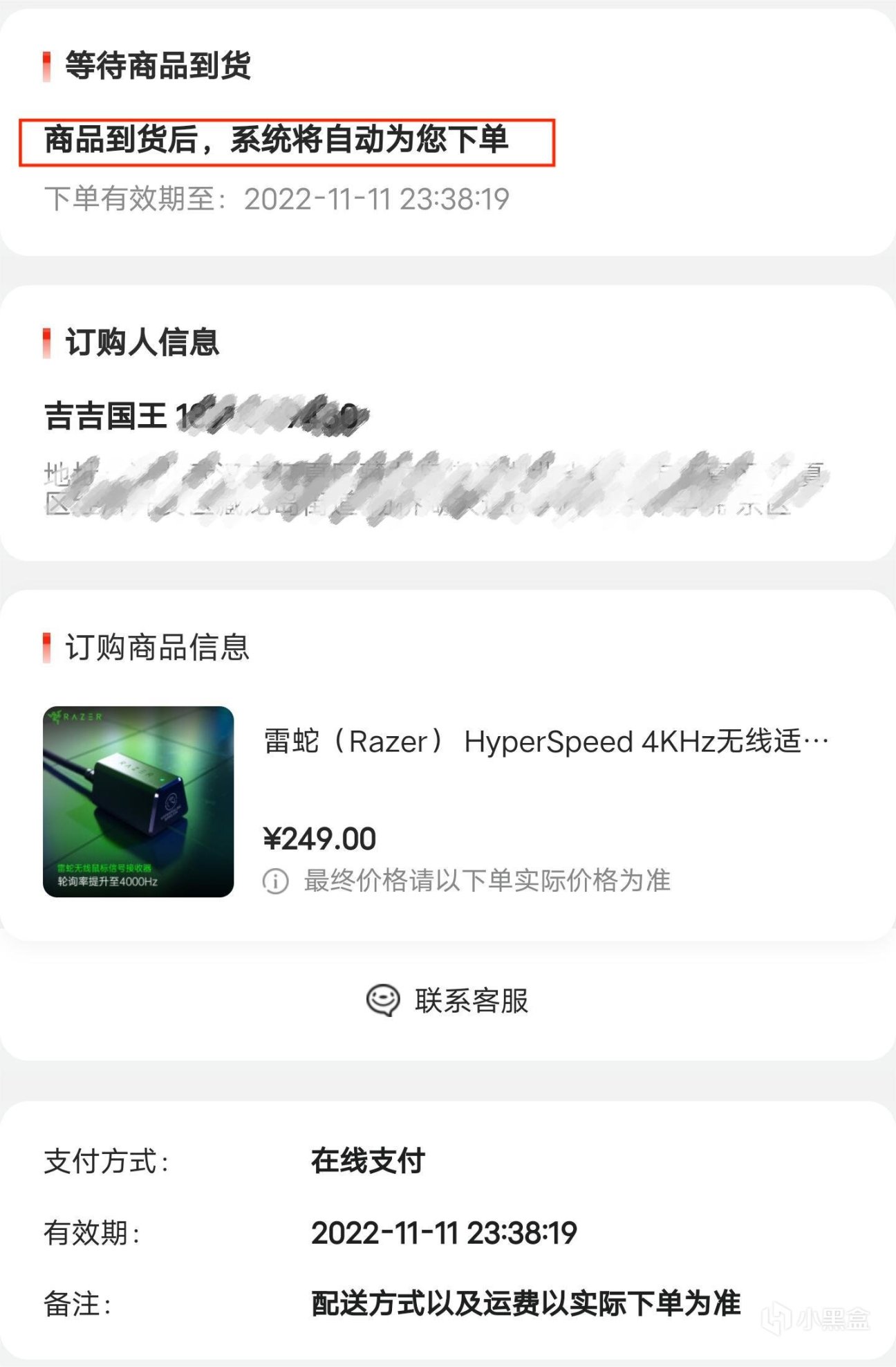 我已經做了訂購。