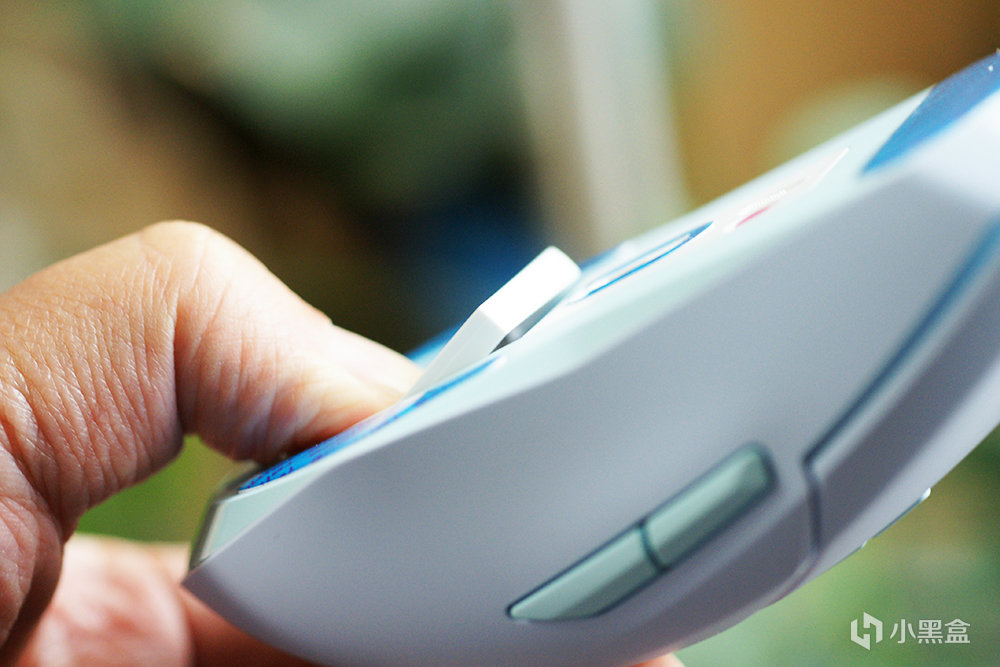 鼠標底部還有無線接收器的收納倉,它的蓋板是磁吸設計,用手指按壓即可打開,十分方便。