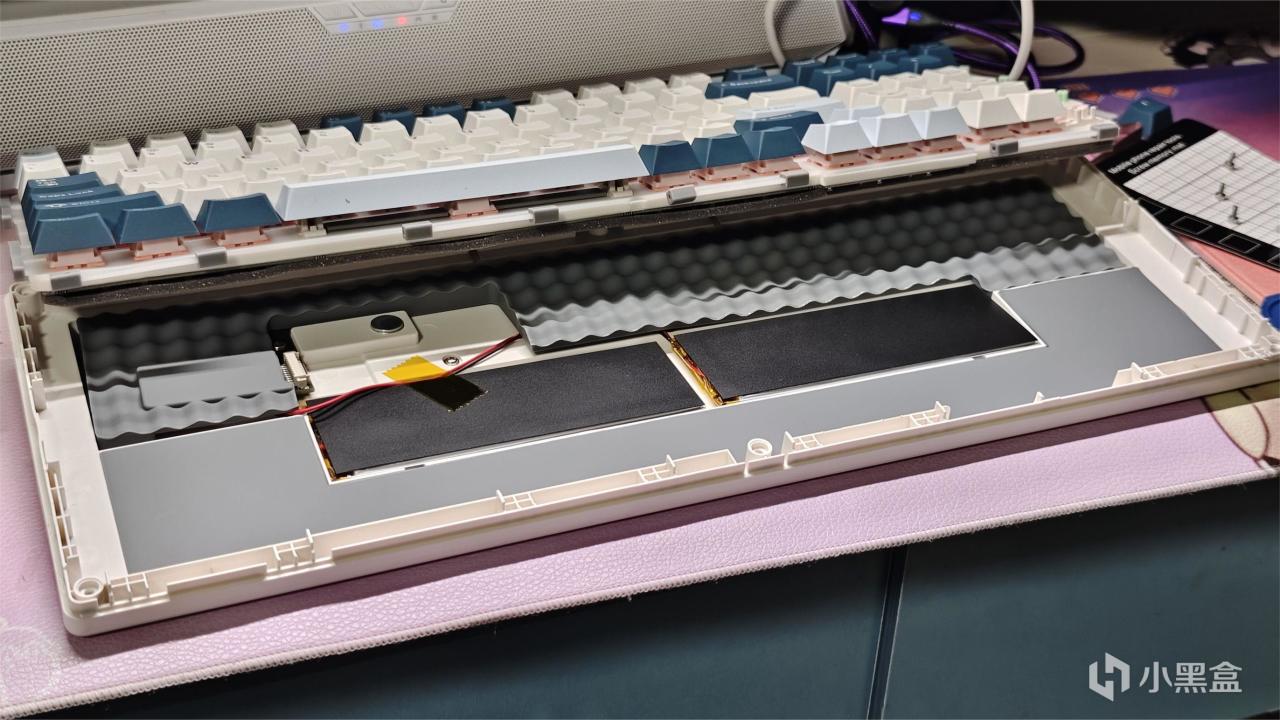 底下是消音硅膠底墊,這樣整個搭配了非常消音而且沉悶的聲音,以及2塊3000mAh電池並聯供電。這……手機那邊的雙電芯設計嘞~