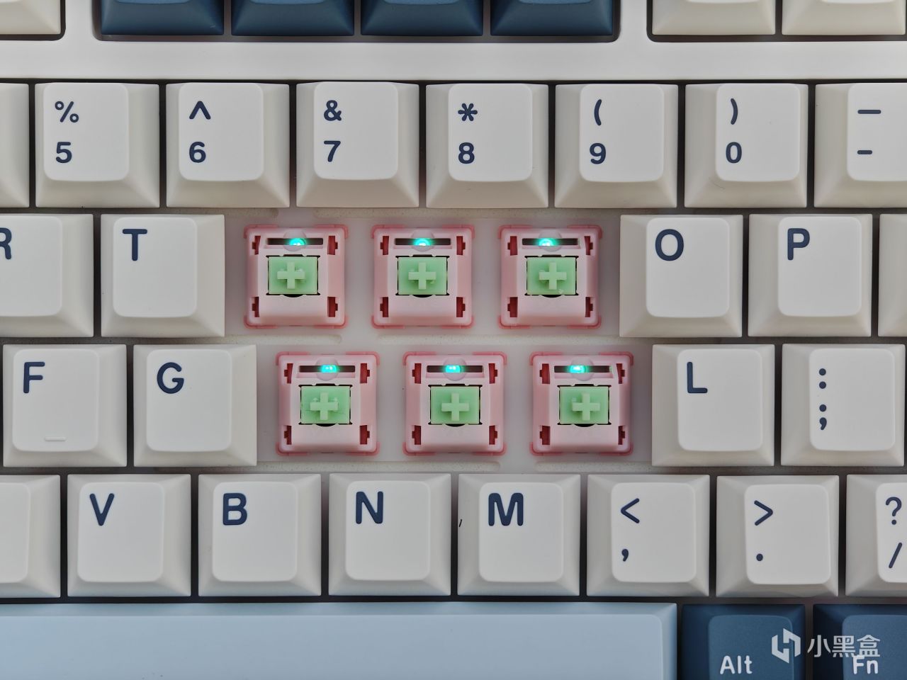 整體是個類98配列布局,下沉方向鍵,空格側面的三顆Alt,Fn,Crtl,相比V98Pro增加了一個Fn,很文明的設計。