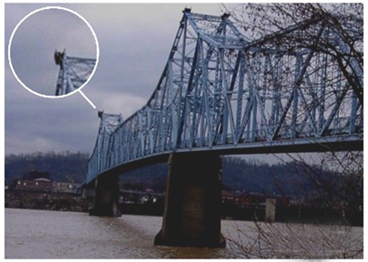 銀橋始建於1928年,是美國首座鋁漆走橋,因其通體成銀白色,故名銀橋。1967年12月15日,作爲連接西弗吉尼亞州和俄亥俄州主要幹道之一的銀橋發生嚴重的坍塌事故,一輛汽車從橋上墜落,46人當場死亡,9人重傷,2人失蹤。據傳在該橋樑坍塌之前,曾有多人在附近目擊到一個生有翅膀的巨大人形生物飛過。詭異的是,自此次事件之後,普萊森特再也沒有出現過天蛾人的目擊記錄,但從那時起,世界各地都出現與天鵝人類似的目擊描述。