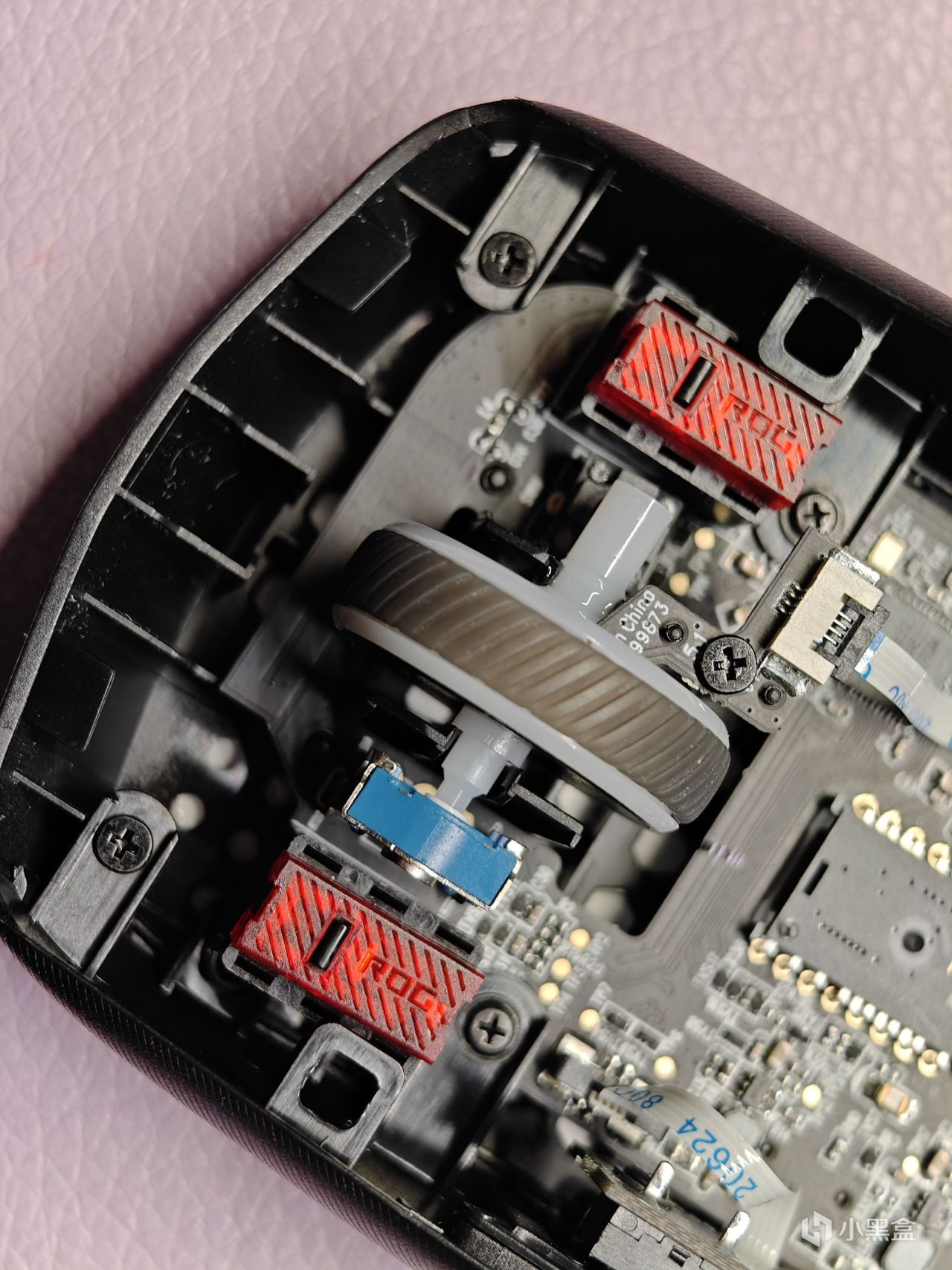 ROG 自家的機械微動有着7000萬次的點擊壽命,這個微動我用了很多次,手感偏肉,但是回彈力度較大,確認感很強。有一點點拖拉的感覺,對休閒遊戲很棒。