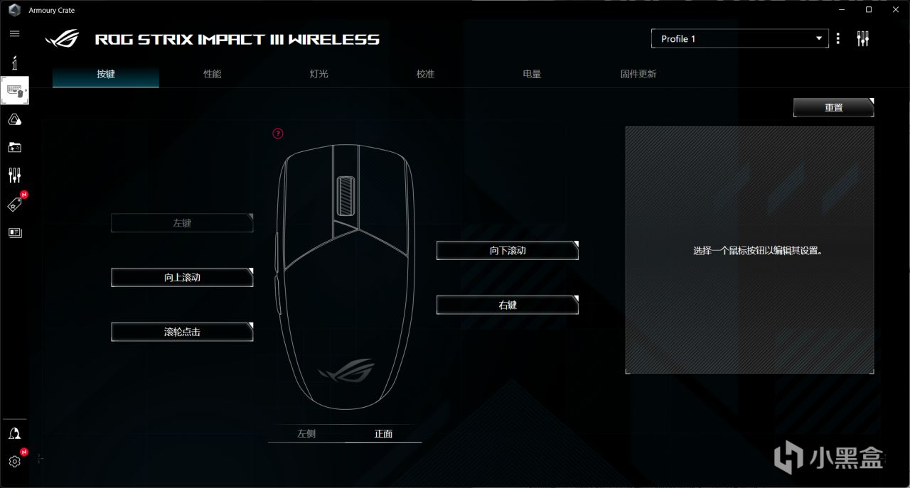 奧創中心可以直接識別出來,可以對側鍵和左右按鍵做自由編輯,ROG奧創中心在自定義這塊兒可以跟羅技G HUB有得一拼。