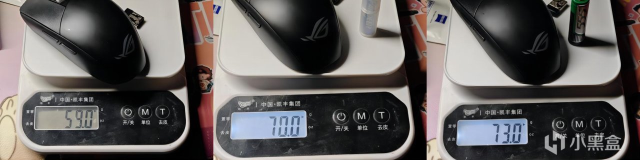 影刃3無線的裸機重量59克,這個數字也是影刃3有線版的重量,如果放一塊兒7號電池是70克,5號電池是73克。我個人建議考慮5號電池,和7號電池套殼的重量差不多,續航還能有顯著提升,何樂不爲?