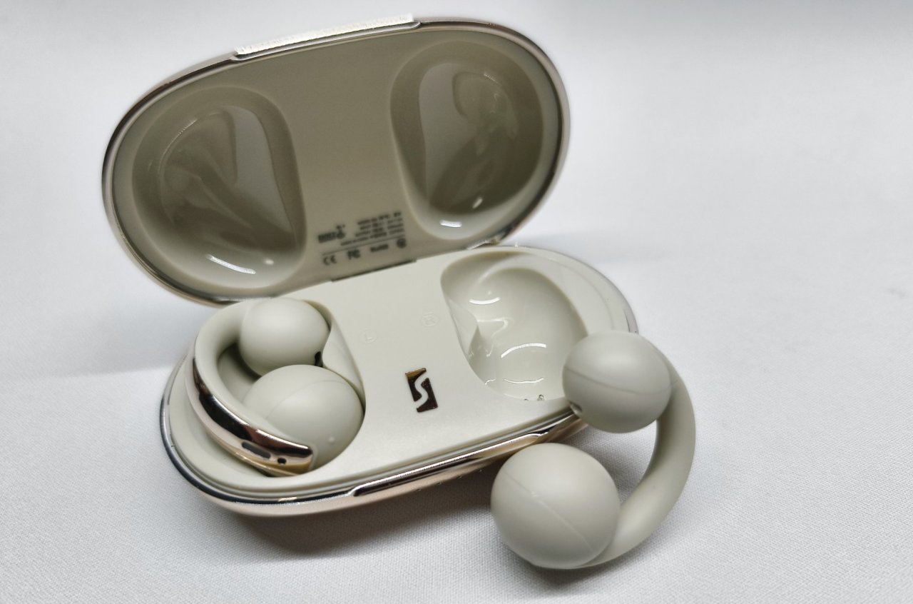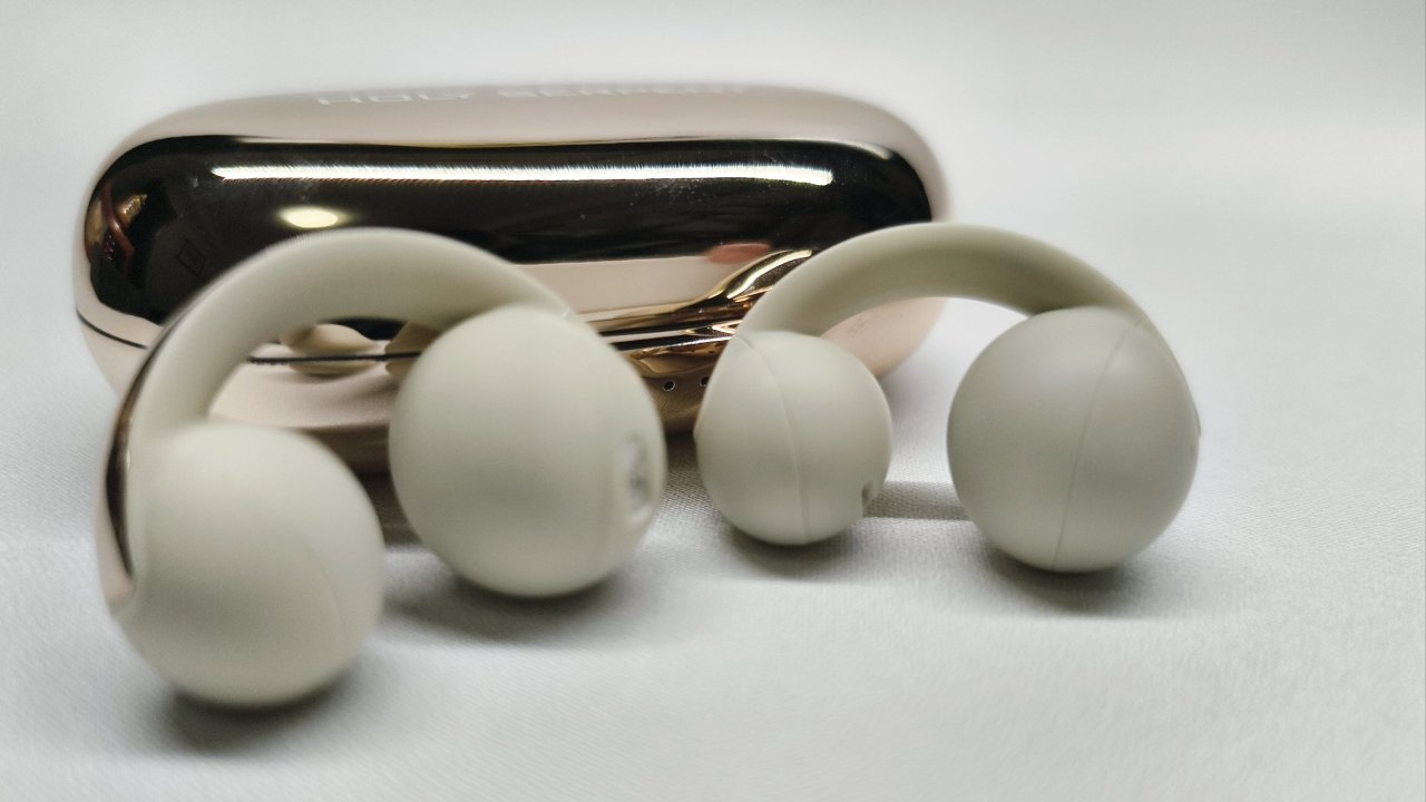 大家應該都知道蛇聖這樣的耳夾耳機出到現在已經是第三代了,我手中呢恰好有他家的隕石,就拿來對比一下吧,耳機外殼的配色與你選擇的配色是相關聯的,比如我隕石選的是牛油果,那他殼子也是牛油果。但是星環我選擇的是香檳卡其,他的外殼確實金色的,給人一種奢飾品的感覺,多少有點炫眼睛了。