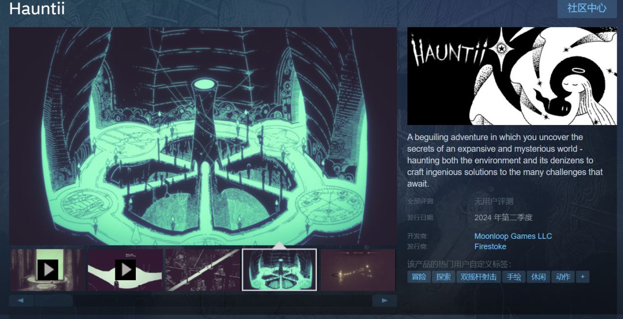 - 由Moonloop Games LLC負責開發、Firestoke負責發行的手繪風格雙搖桿射擊探索冒險遊戲《Hauntii》,現已上架Steam平臺,並將於2024年第二季度期間正式推出。