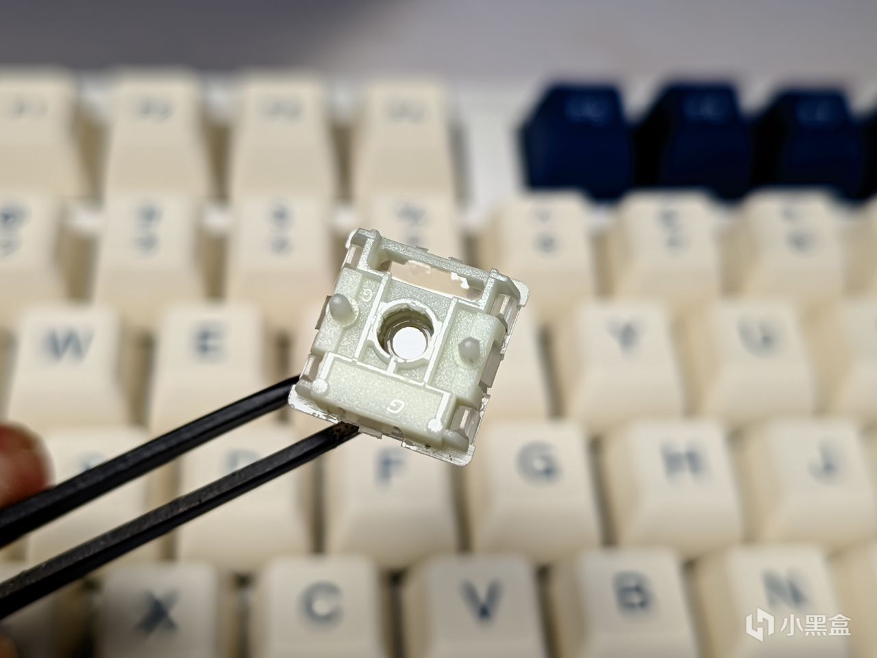從背部就可以看到,磁軸與機械軸最大的差別就是,其本身沒有做針腳處理,並且在中心區域有一塊永磁鐵,而其本身的材質方面還是老三樣,POM+PC+PA66,不過很可惜,雖然都是佳達隆的軸體,白磁軸的聲音表現是要略差於磁玉軸的,不過畢竟價格擺在這裏,磁玉可比白磁軸又貴了不少,手感方面除去可以自由切換的行程量來說,實際表現屬於是一個比較輕壓力的軸體表現,30g的初始力到50g觸底,也可以佐證這點,並且是線性軸手感,所以如果是青軸玩家,或者是古鼎軸玩家,那可能真心要適應一下了。