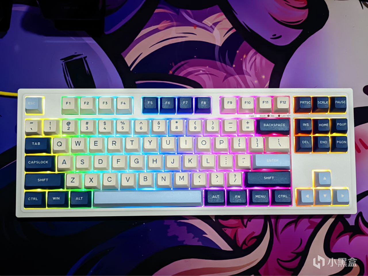 鍵盤採用的是PBT注塑的KSA球帽,最近出現了好多球帽鍵盤啊,我還是更喜歡原廠高度一點,不過因爲我本身對鍵帽的適應性還行,所以並沒有出現因爲更換鍵帽高度而產生的不適應性,但突然更換成磁軸,手感的變化倒是需要簡單適應一下,建議長期使用機械鍵盤的老哥初次上手先開把訓練營,免得被迫進行家族守衛戰。