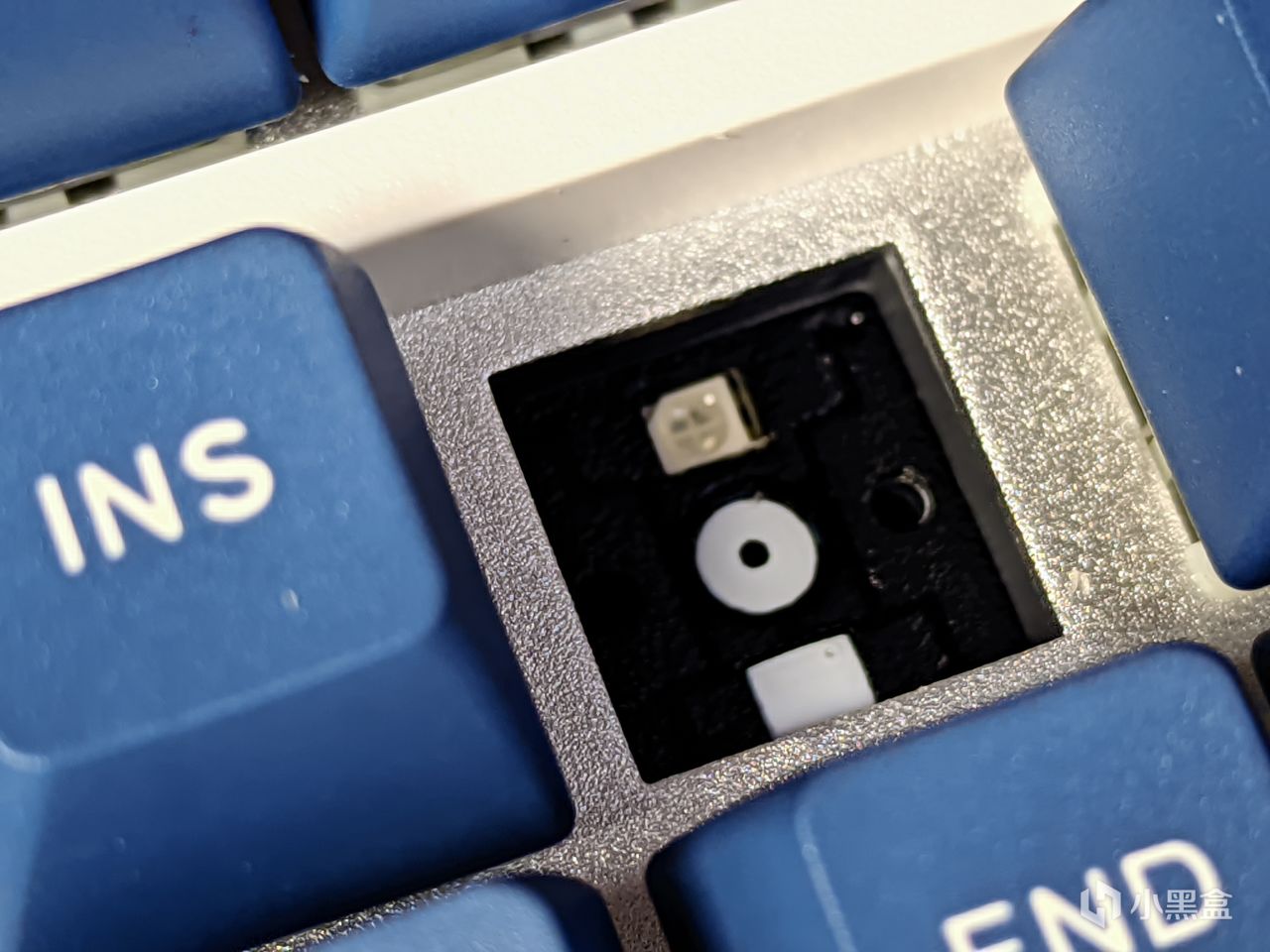與機械軸版的K100不同,磁軸版的K100定位板部分採用了陽極氧化鋁的材質,並且從下等位改成了上燈位,側刻是沒得玩了,但可以玩玩正刻,也是比較不錯的,不過其自帶的鍵帽爲不透光設計,所以如果想整透光設計的話,需要自行購買鍵帽並更換。