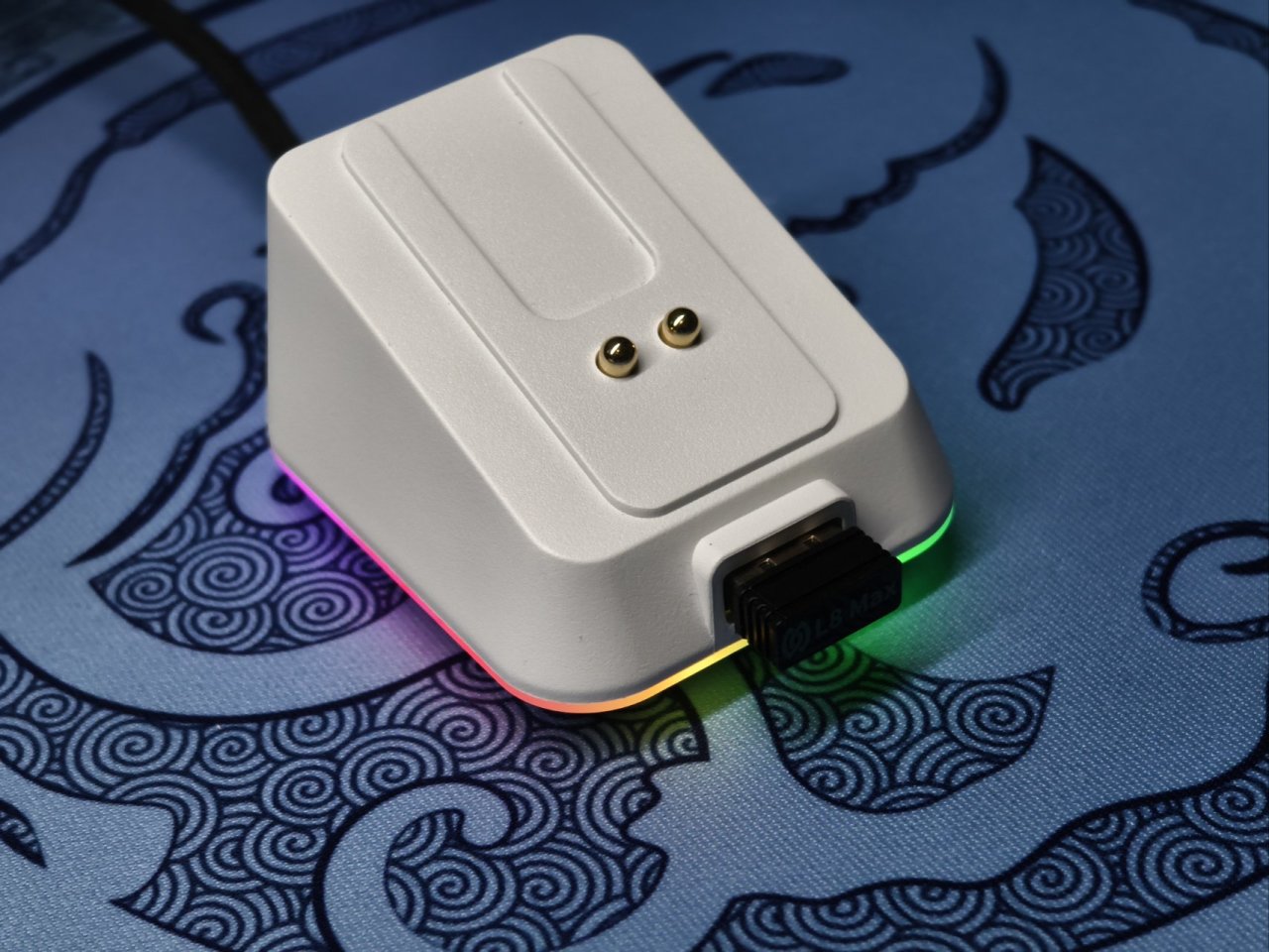 底座呢還是可以進行一個外部的拓展的,像是什麼鼠標啦耳機啦鍵盤啦之類的2.4G接收器都可以插上去,可能會有人說這不沒省嗎?只有一個口,那我只能說這個充電底座不僅僅可以給你充電,還能給你贈貼顏值,這樣子的錦上貼花,再給你一個usb口使用你還嫌少啊