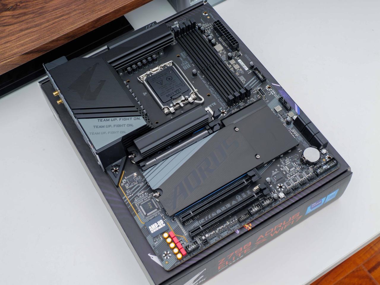 這裏搭配的主板是我在雙11活動期間入手的技嘉Z790 AORUS ELITE X,選中這塊主板,主要還是因爲技嘉在DDR5時代的內存超頻優化做得着實給力,基本算是御三家中最重視內存超頻廠家了,另外在硬件堆料方面也做得十分厚道。