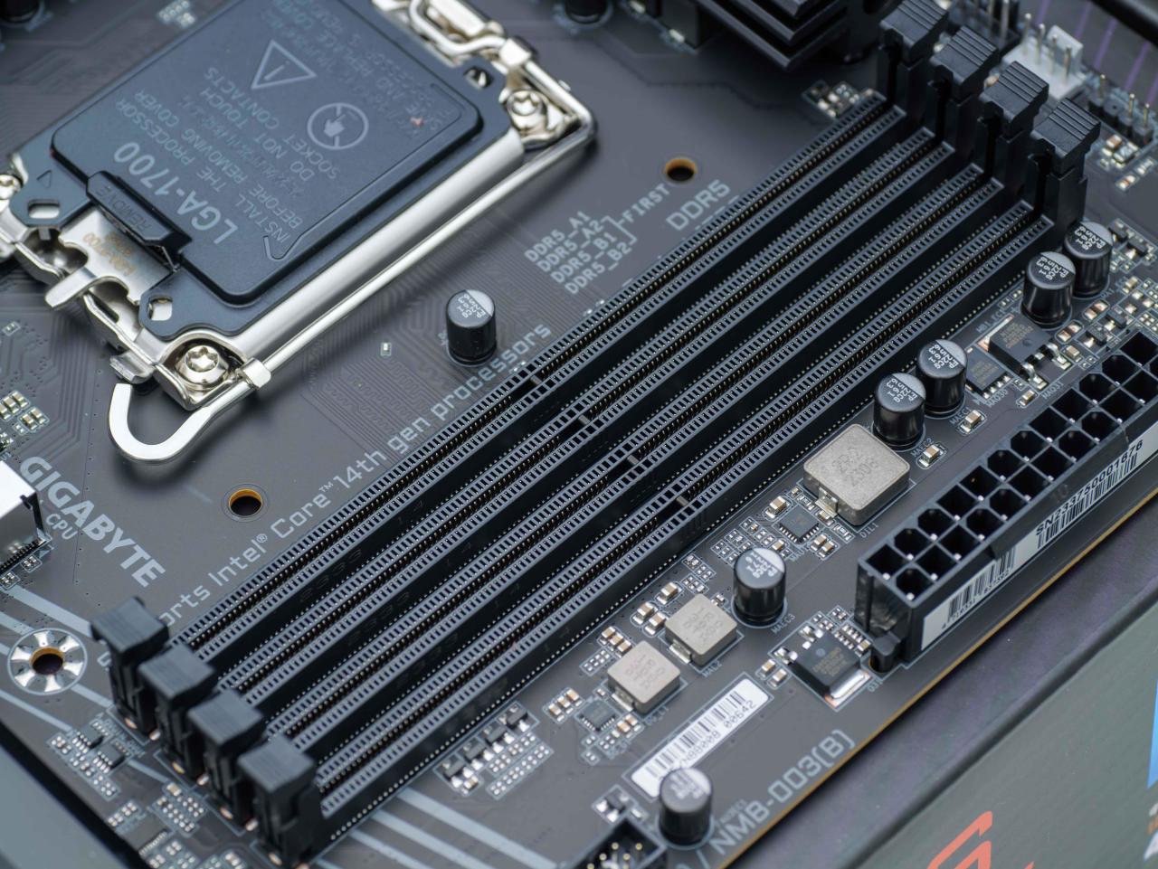 技嘉Z790 AORUS ELITE X爲標準的4槽位主板,內存單槽最高支持48GB容量,全部插滿可以實現192GB超大內存。