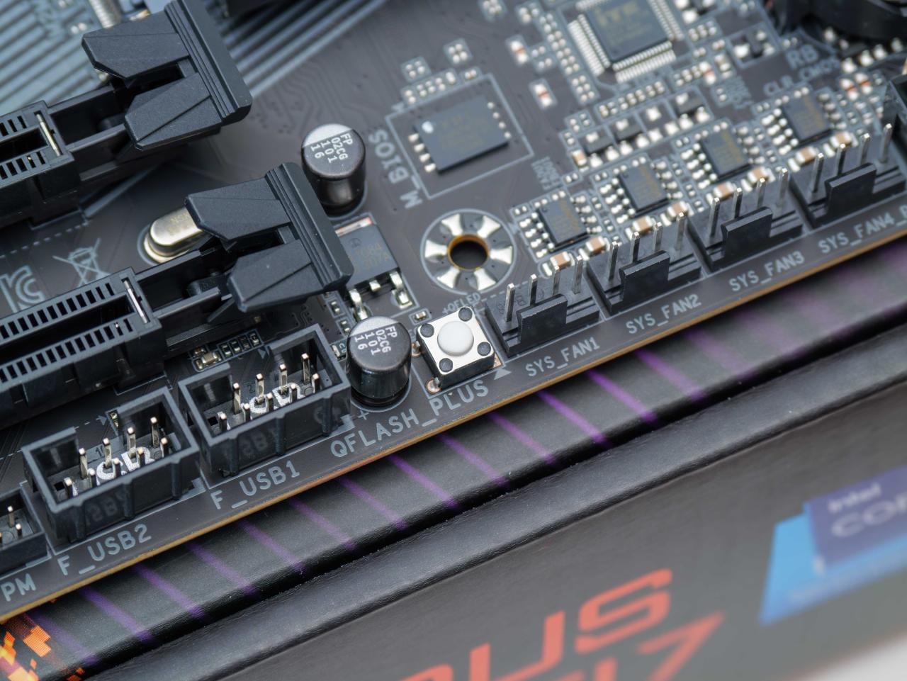 在主板最下方設有Q-FLASH Plus按鈕,在沒有安裝CPU、內存和顯卡的情況下,只需要給主板通電就能直接更新BIOS,對DIY折騰黨來說很是方便。