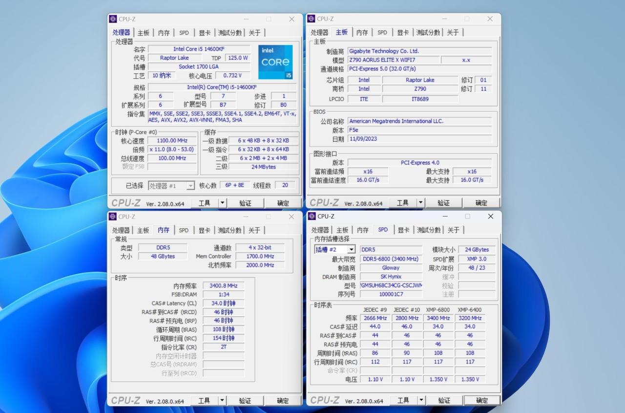 CPU方面,原本電腦上在用的i7-13700K的IMC體質有點弱,所以這裏我從小黃魚淘了一塊體質還不錯的i5-14600KF,勉強算個小雕吧。沒選i7-14700K主要是聽說目前體質普遍略低,不太好找小雕。