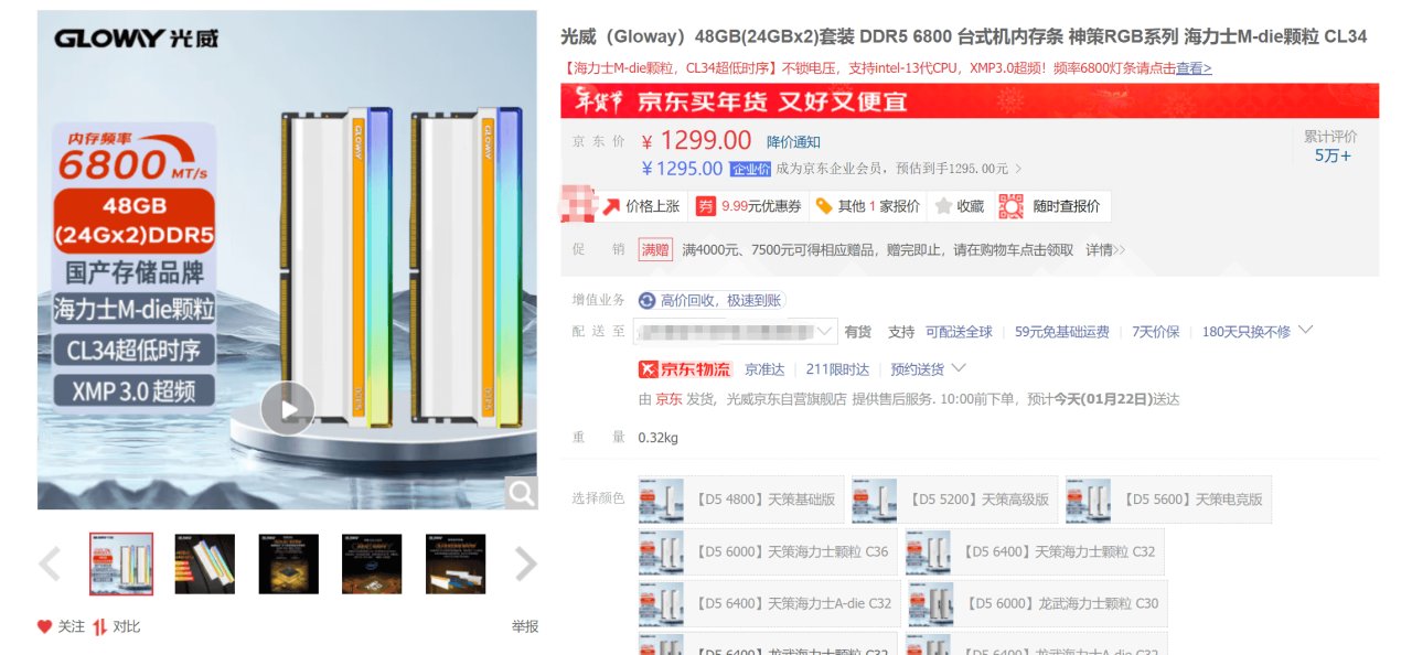 今天同大家分享的就是我在雙11期間入手的國產大廠光威出品的DDR5神策內存24GBx2套條,默認的XMP頻率就高達6800MHz,搭載SK海力士全新M-Die顆粒後,配合技嘉主板的D5內存超頻黑科技堪稱超頻如喝水,性價比相當高。
