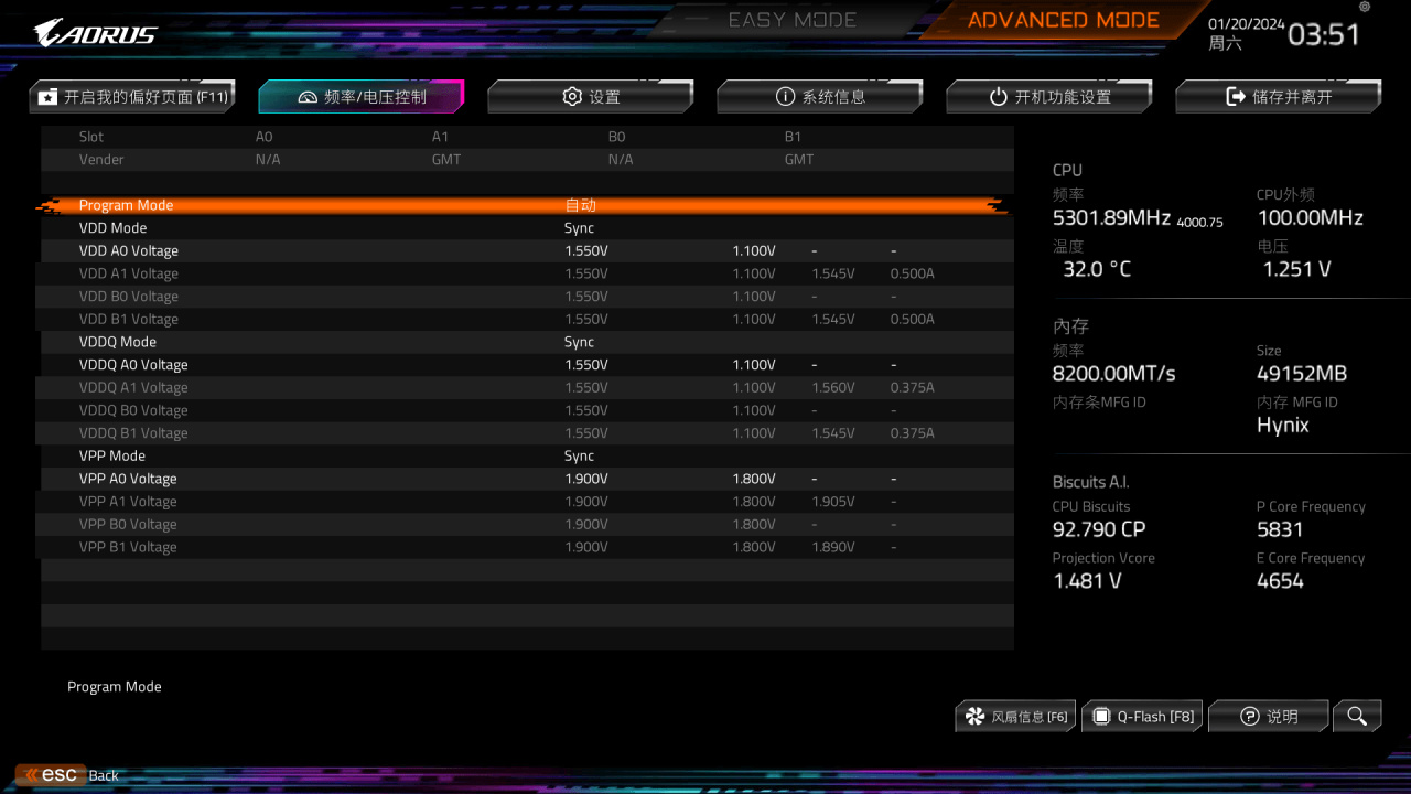 不過我對自動超頻8000MHz下的性能表現有點不滿足,於是再次嘗試直接用主板把光威神策這套內存自動拉到8200MHz試一下: